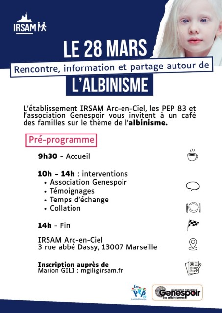 L’établissement IRSAM Arc-en-Ciel, les PEP 83 et l’association Genespoir proposent, le 28 mars prochain, un café des familles sur le thème de l’albinisme.
