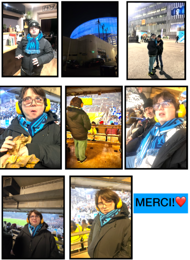 Grâce à IRSAM Arc-en-Ciel, Stanislas a eu la chance d’assister au match OM-Toulouse, accompagné d’un éducateur bienveillant, Philippe, et de nous, ses parents. Ce fut un moment mémorable, chargé d’émotions, de joie et de partage. Pour notre famille, ce rêve devenu réalité restera gravé longtemps dans nos cœurs.