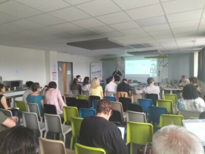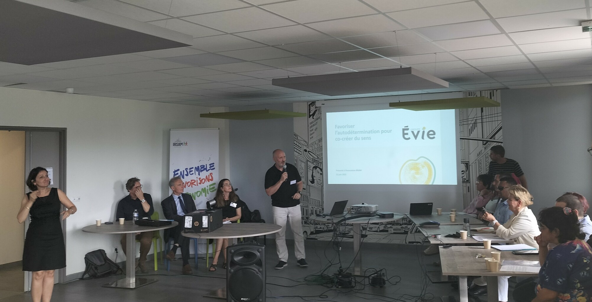 Le jeudi 23 juin, les JDD ont démarré avec une conférence sur l’approche d’accompagnement avec la psychoéducation, animée par Marc PRENEVOST, un changement de vision et de posture, véritable enjeu de transformation de l’offre médico-sociale. Une formation dédiée à ce concept est proposée au sein de notre association, 3 professionnels de l’institut IRSAM Arc-en-Ciel, Thomasz STEPIEN, chef de service, Lysiane BOFFA, coordinatrice et Angélique NUGUES, monitrice-éducatrice, ont ainsi pu témoigner de l’intérêt de cette approche pour se concentrer sur les capacités de la personne et oser la gestion des risques pour accompagner en donnant du sens. La direction générale et les directions d’établissement doivent être moteurs dans cette dynamique essentielle afin qu’il existe une cohérence et que le système puisse évoluer. C’est un changement de posture qui donne rapidement des bénéfices aussi bien pour les personnes accueillies que les professionnels. Ce concept va permettre de renforcer les expertises de nos salariés et ainsi de valoriser nos métiers, peu reconnus de nos jours. La directrice IRSAM Arc-en-Ciel, Stéphanie RATINIER explique que cet institut est actuellement dans cette démarche qui va déboucher sur une proposition à la rentrée d’un nouveau métier, facilitateur, inspiré par cette approche psychoéducative. Pour cette matinée, la direction générale avait convié l’Unapei Alpes Provence ainsi que l’Association Régionale pour l’Intégration ARI .