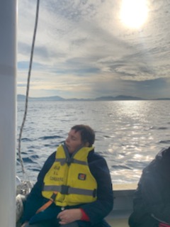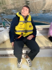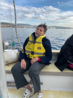 Hélène se laisse guider au gré des embruns. Elle apprécie tout particulièrement ce moment d’évasion, par instants elle nous adresse un sourire complice.