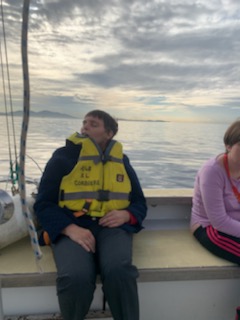 Cédric réclame souvent l’activité. il attend avec impatience de pouvoir glisser sur l’eau et dirige l’équipage avec calme et assurance en tenant le gouvernail.