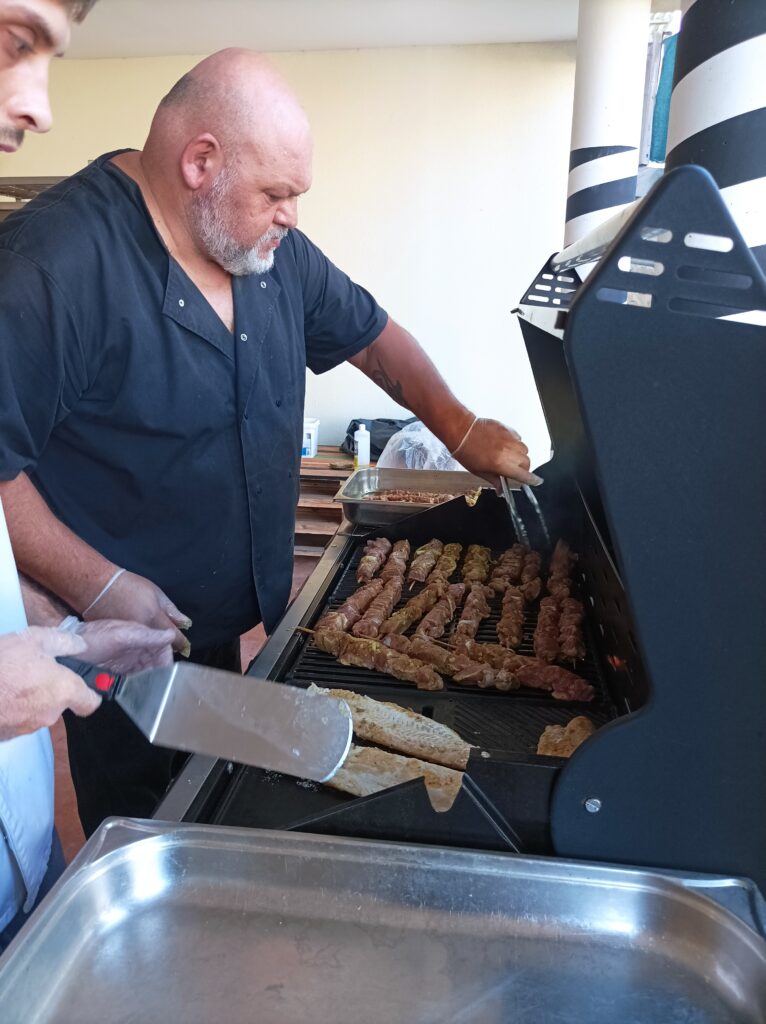 En août, la cuisine nous a proposé de nous restaurer sous le préau, autour d’un barbecue.