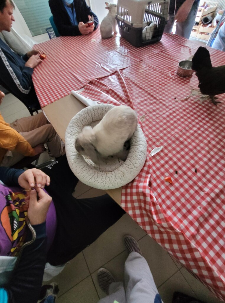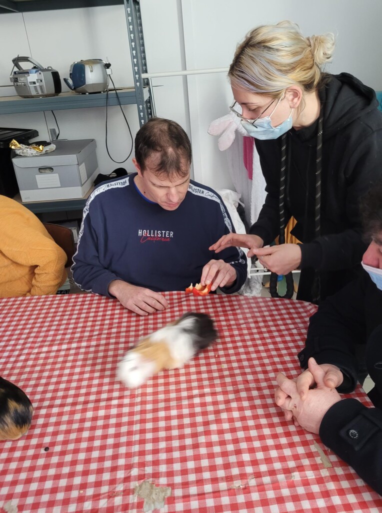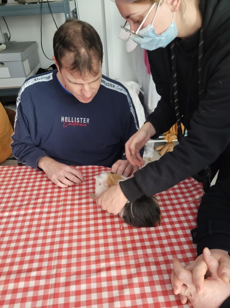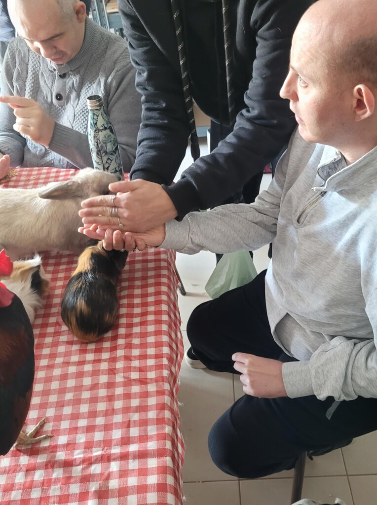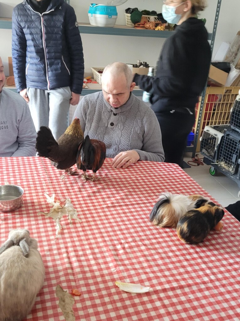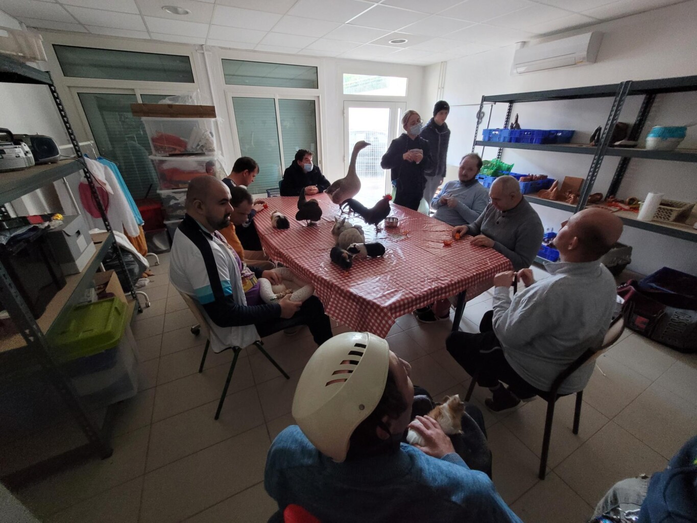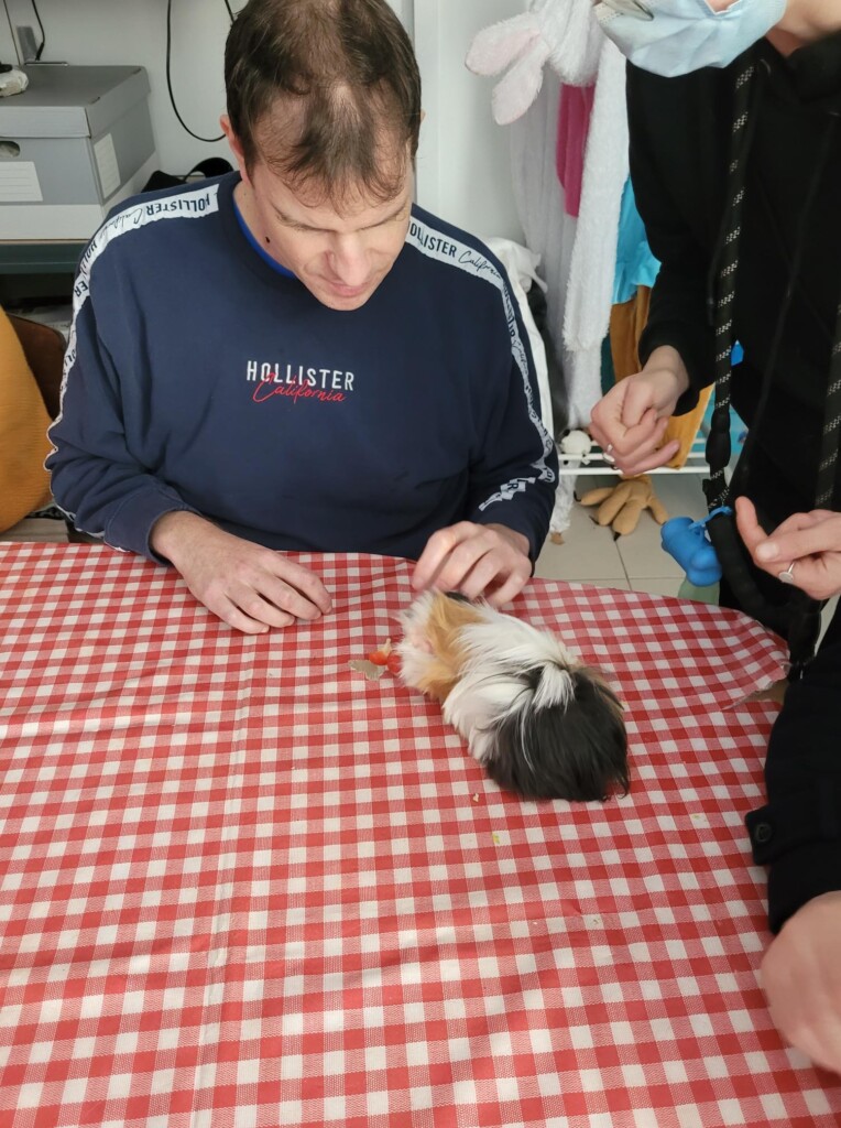 Ce 16 décembre, Thomas, Cédric, Michel et Karim ont rejoint les résidents du foyer au rendez-vous mensuel qui a du chien : l’activité d’éveil par les animaux.