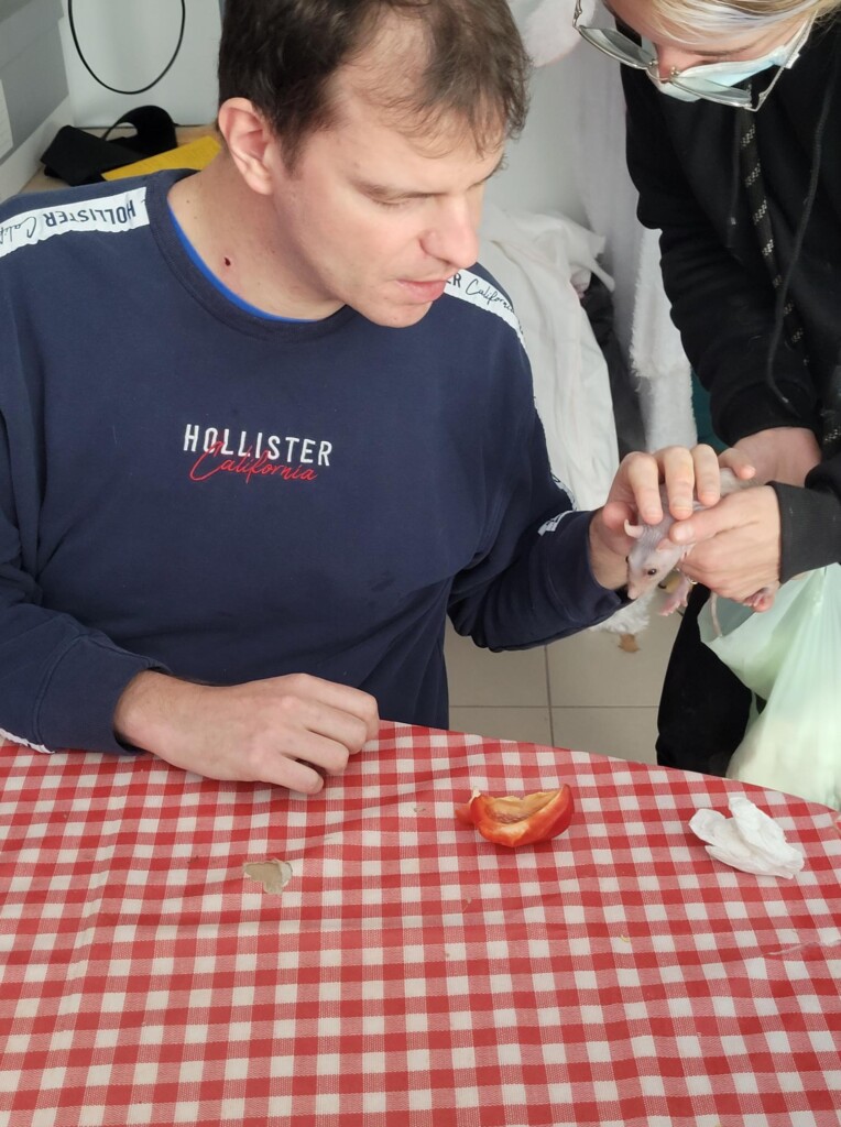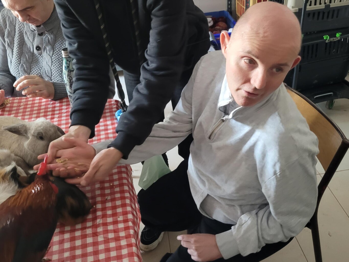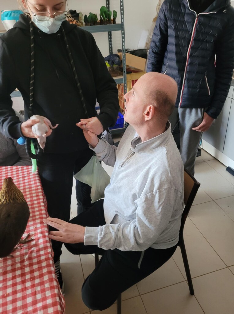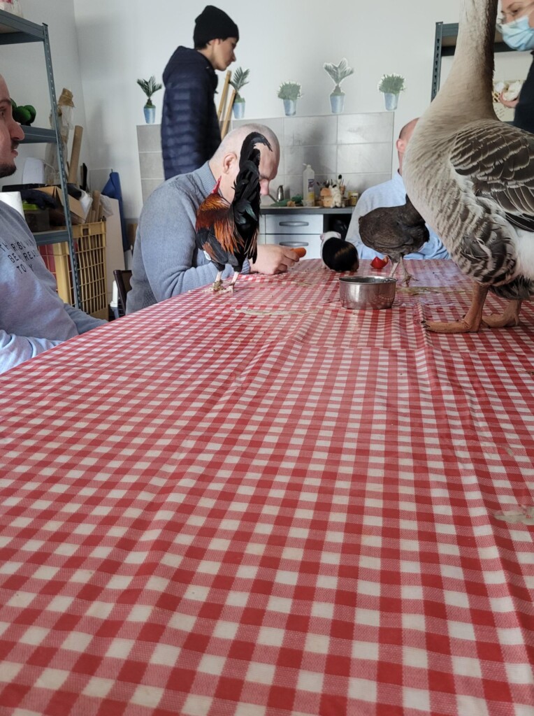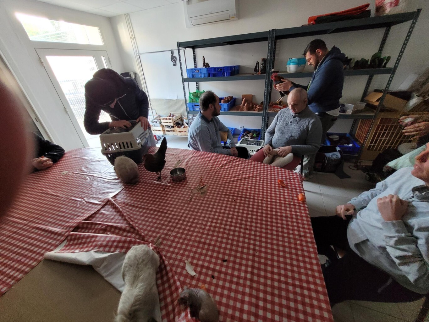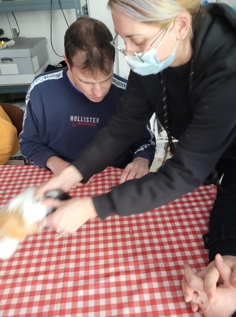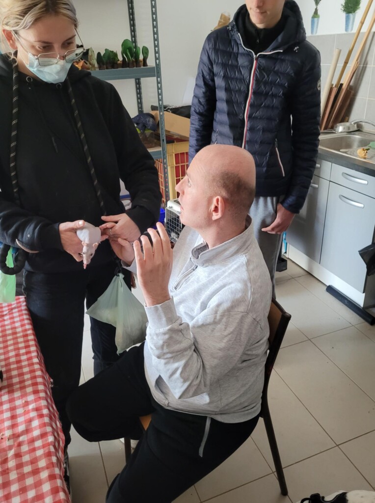 Ce 16 décembre, Thomas, Cédric, Michel et Karim ont rejoint les résidents du foyer au rendez-vous mensuel qui a du chien : l’activité d’éveil par les animaux.