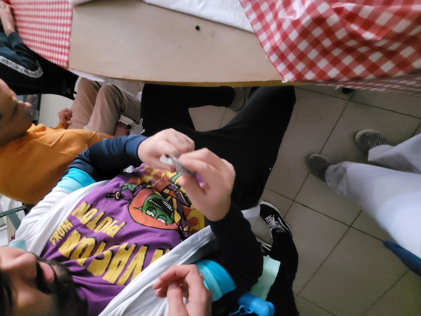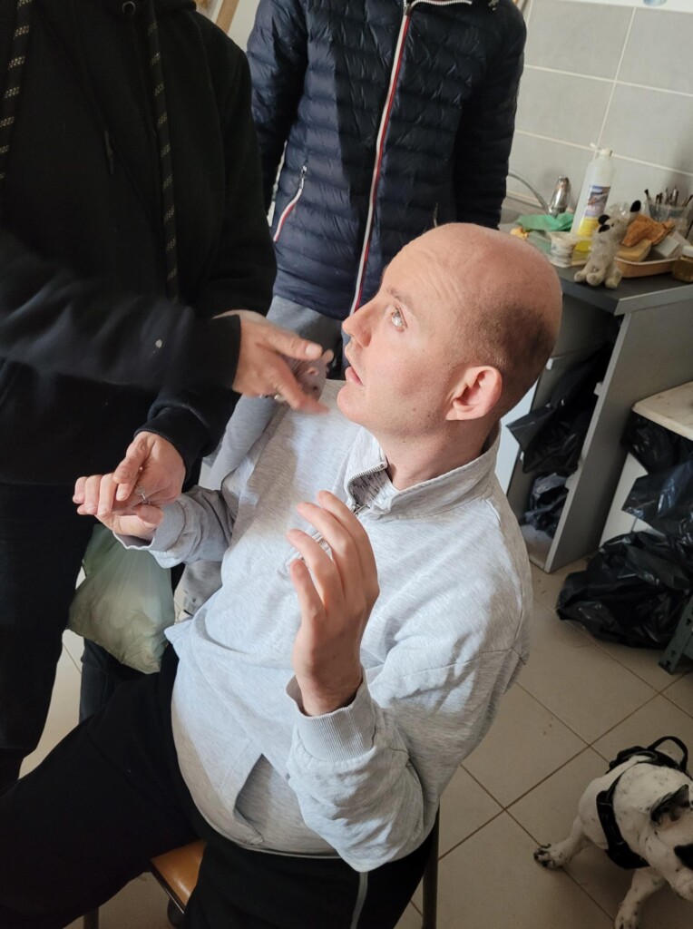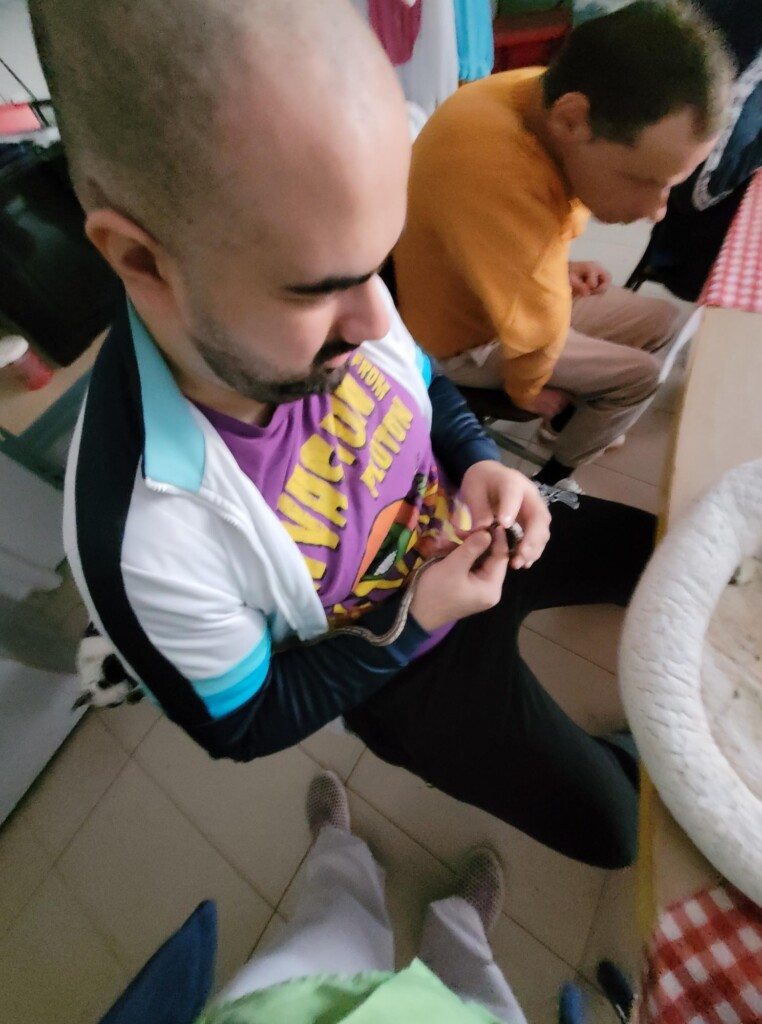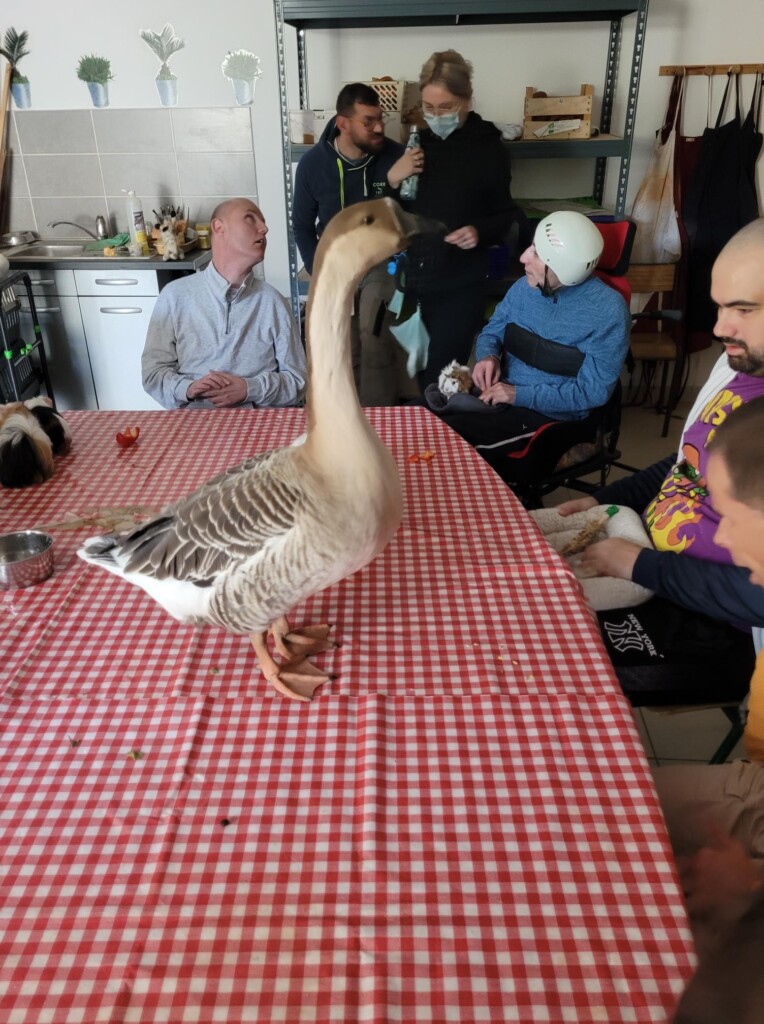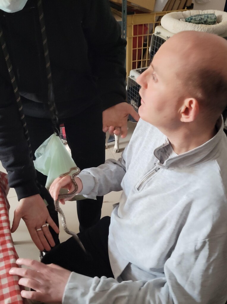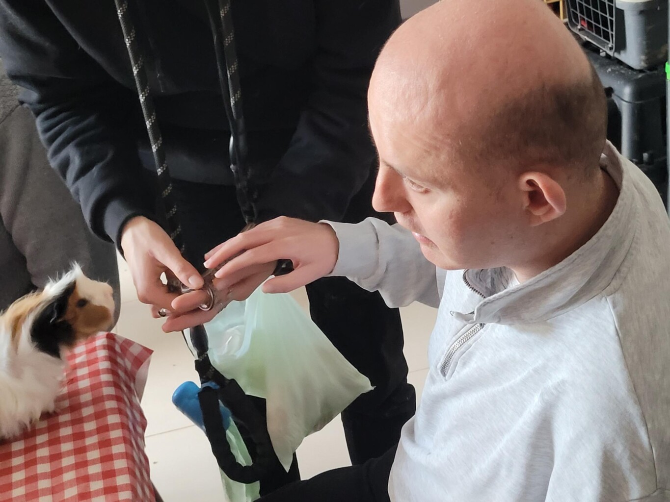 Ce 16 décembre, Thomas, Cédric, Michel et Karim ont rejoint les résidents du foyer au rendez-vous mensuel qui a du chien : l’activité d’éveil par les animaux.