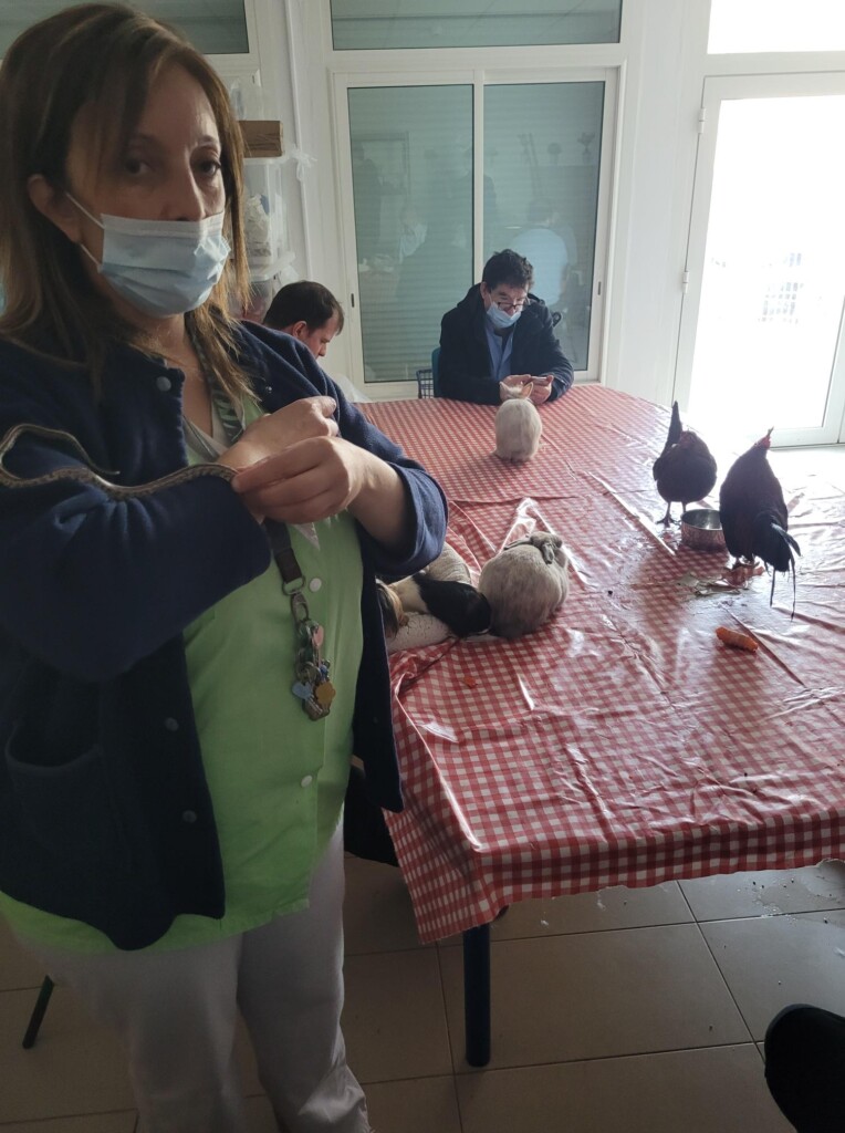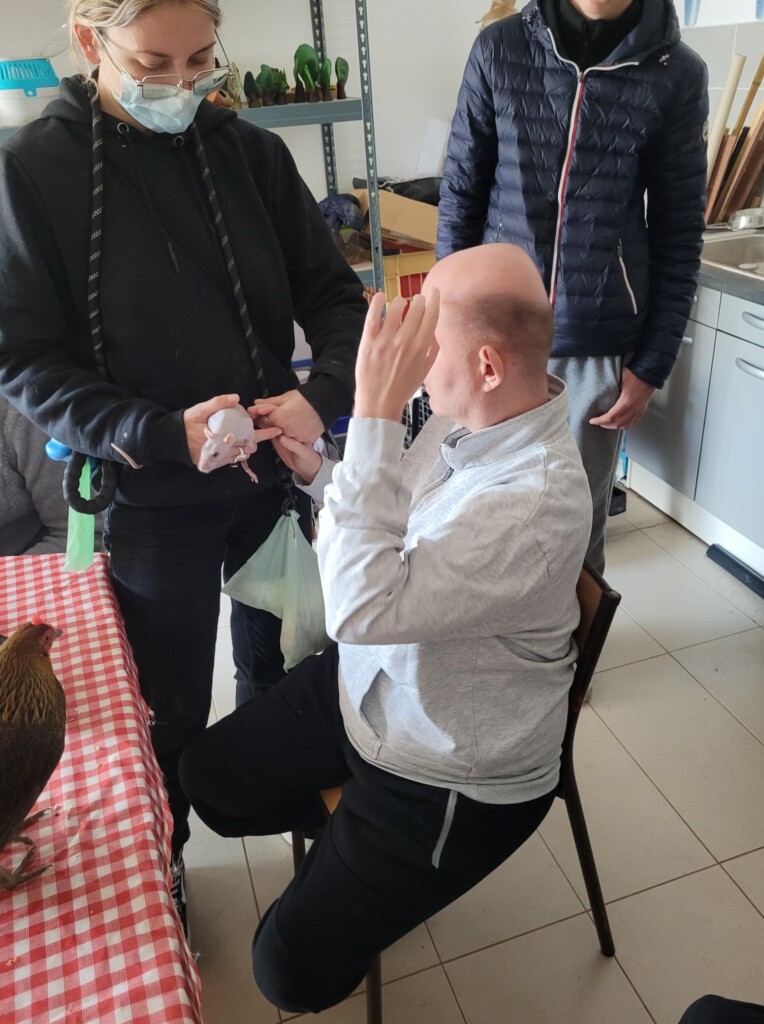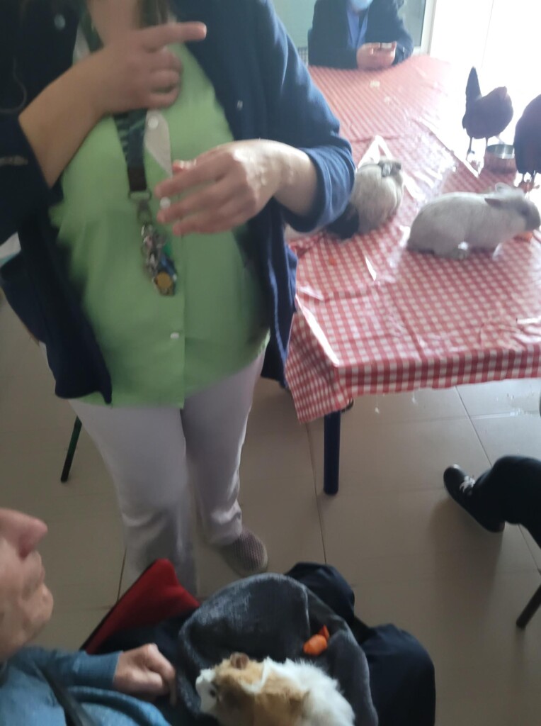 Les résidents ont ainsi pu toucher voire porter, sentir, écouter, et donner à manger aux divers animaux.