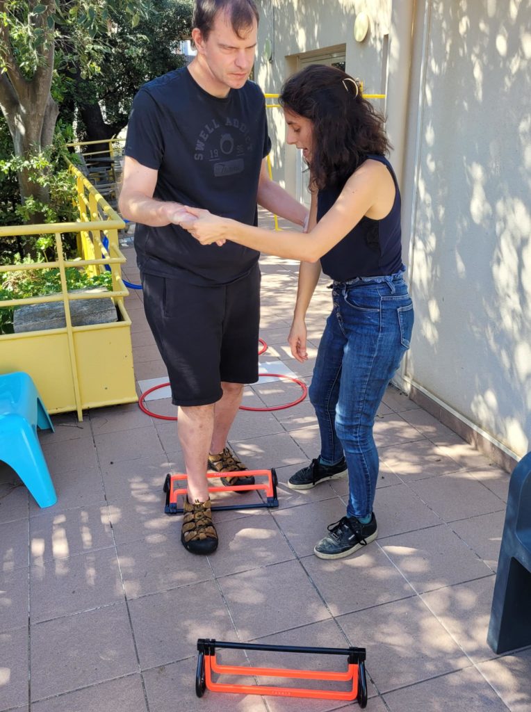 Enjamber, passer sous une barre, viser, marcher sur une poutre… tous ces exercices permettent de travailler la motricité, la posture, le tonus et l’équilibre. Il s’agit d’ajuster la position de son corps dans l’espace, et donc de solliciter le schéma corporel. Varier les textures au sol, les appuis, faire intervenir la proprioception, tout cela contribue à renforcer son équilibre.