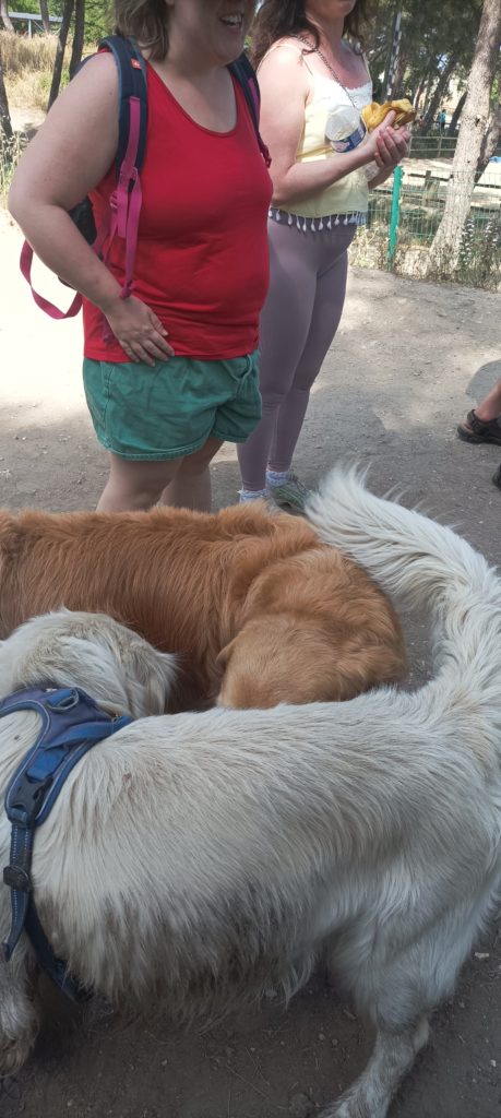 Au cours de la balade au parc, nous rencontrons d’autres personnes promenant également leurs chiens. Ce sont des moments intéressants pour chacun.