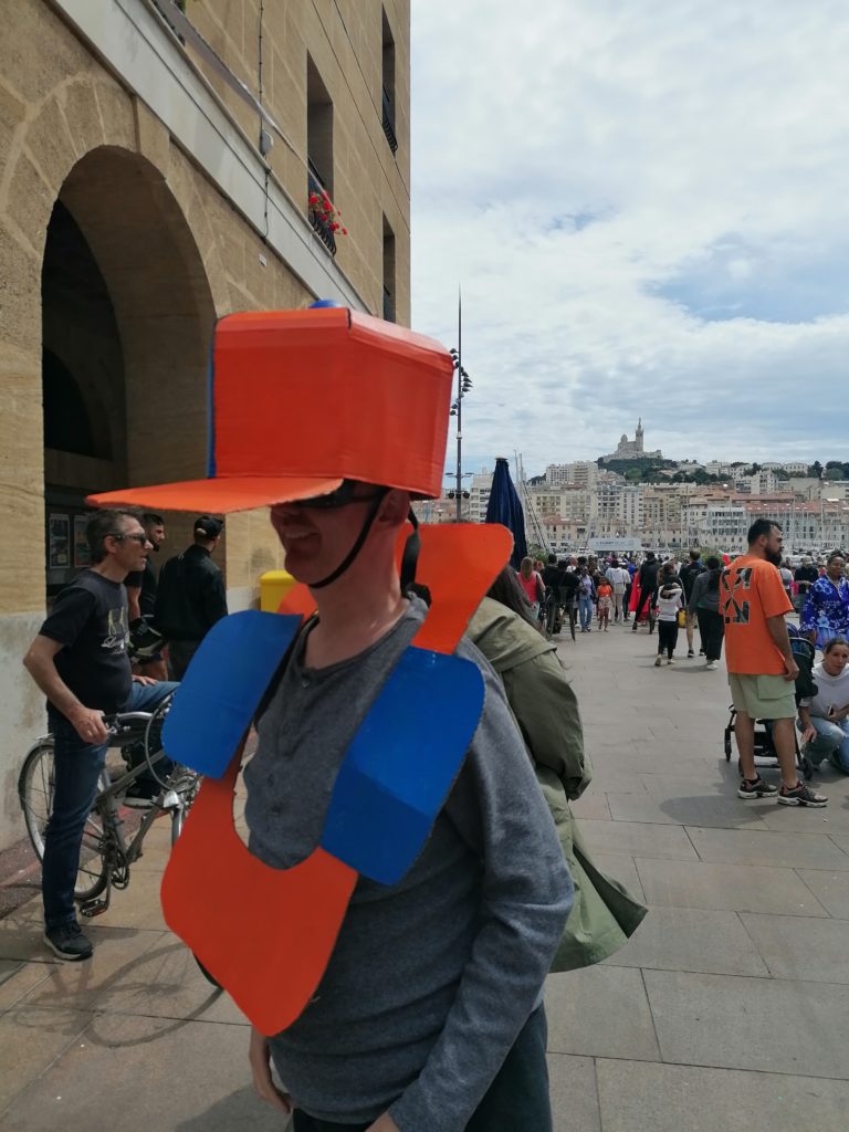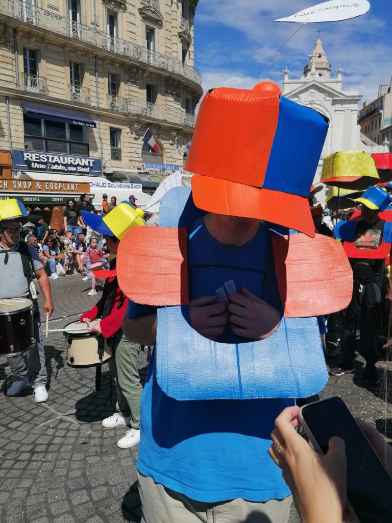 En ce mois de mai où les carnavals battent au son des percussions, quelques personnes accompagnées IRSAM Les Chanterelles ont pu défiler sur le Vieux-Port à Marseille sous le thème des JOParis2024.