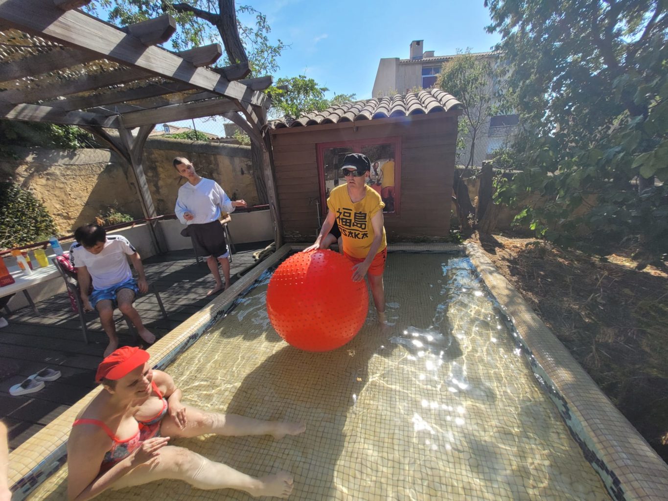 Maillot de bain musique et bonne humeur étaient au rendez vous, s’en est suivi un apéro et une soirée pizza tous ensemble sur la terrasse.