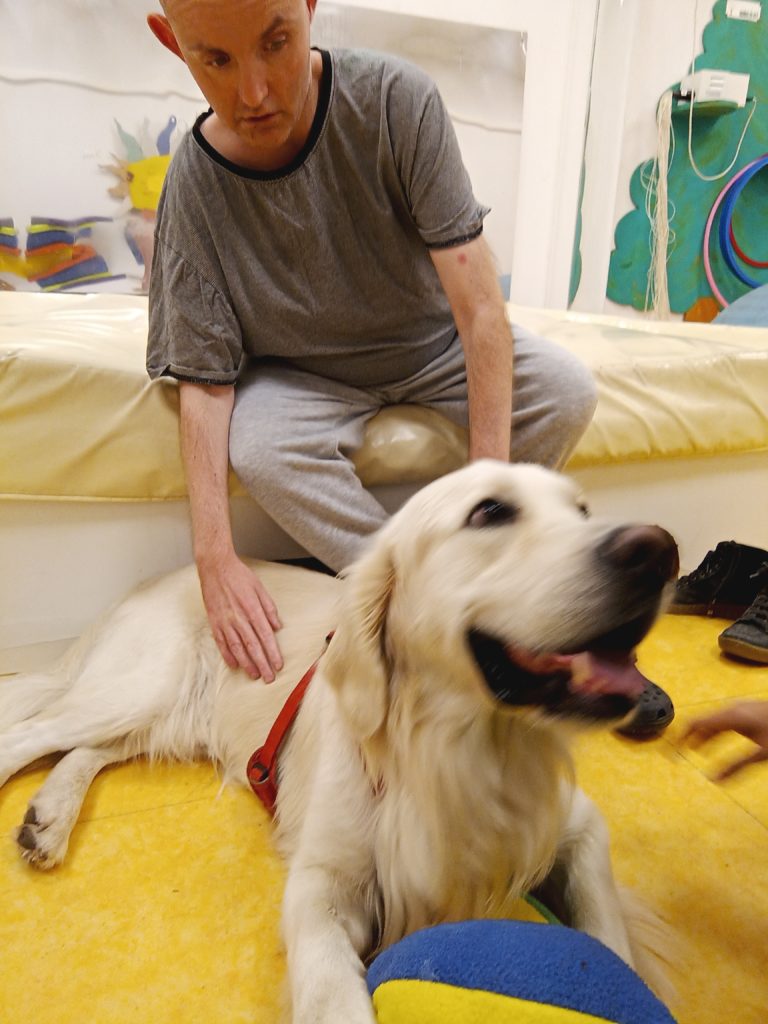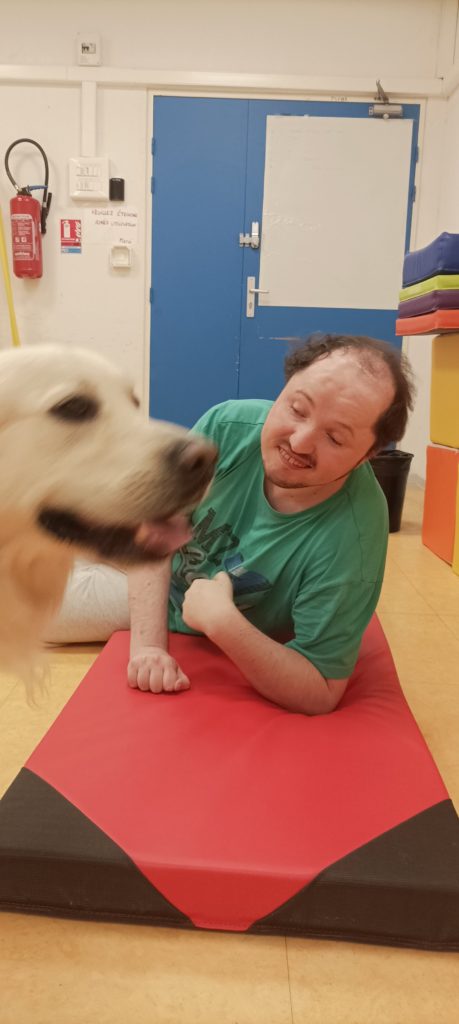 Ainsi à la MAS, chaque activité de psychomotricité, qu’elle soit en extérieur, en compagnie d’un animal ou dans une salle sensorielle, a pour but d’offrir à chaque résident un accompagnement bienveillant et personnalisé.