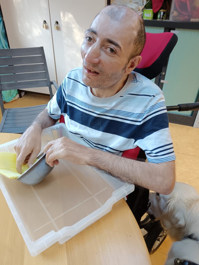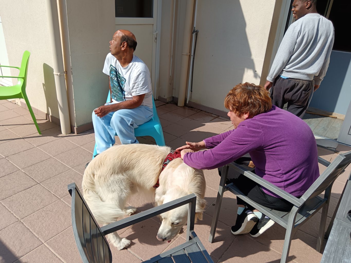 La médiation animale, est un outil précieux de notre psychomotricienne Anaïs. Pour les résidents qui le souhaitent, ce compagnon à quatre pattes va offrir des interactions chaleureuses, stimulantes et apaisantes. Ce sont également des temps propices à renforcer leur motricité fine et globale, ainsi qu’à encourager l’expression émotionnelle. Les séances avec le chien favorisent la détente, stimulent la communication et créent des moments de connexion bienveillante qui apportent du réconfort. Egalement, certains se sentent responsabilisés dans les actions appréciées telles que nettoyer la gamelle, donner à manger à Rio ou tenir la laisse lors d’une balade.