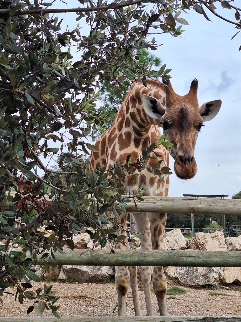 A d’autres de se promener et de contempler des animaux insolites… Comme cette belle girafe ou entendre les cris des singes !