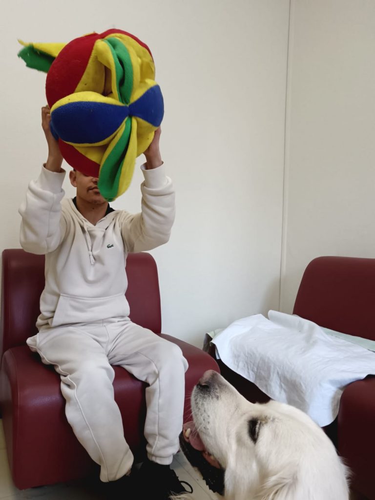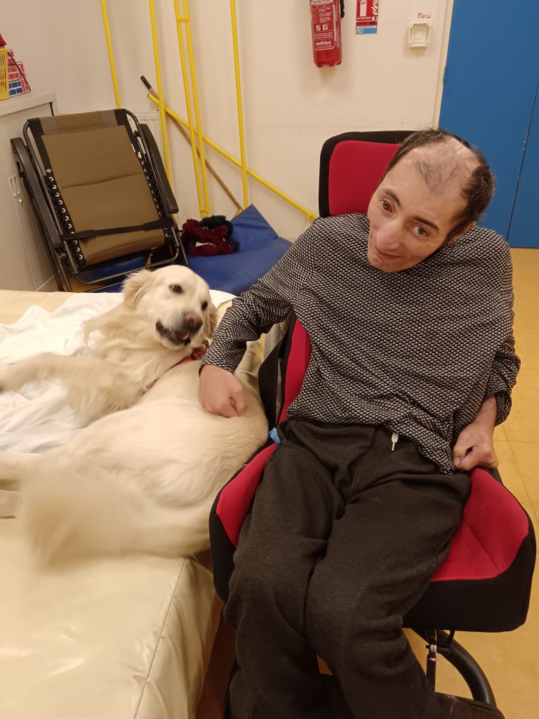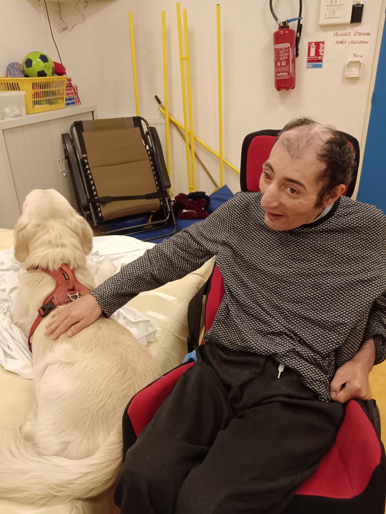En plus des activités équithérapie et karting, les résidents profitent régulièrement de sorties individuelles ou en petits groupes ; et également de moments de jeux avec Rio, le chien médiateur.