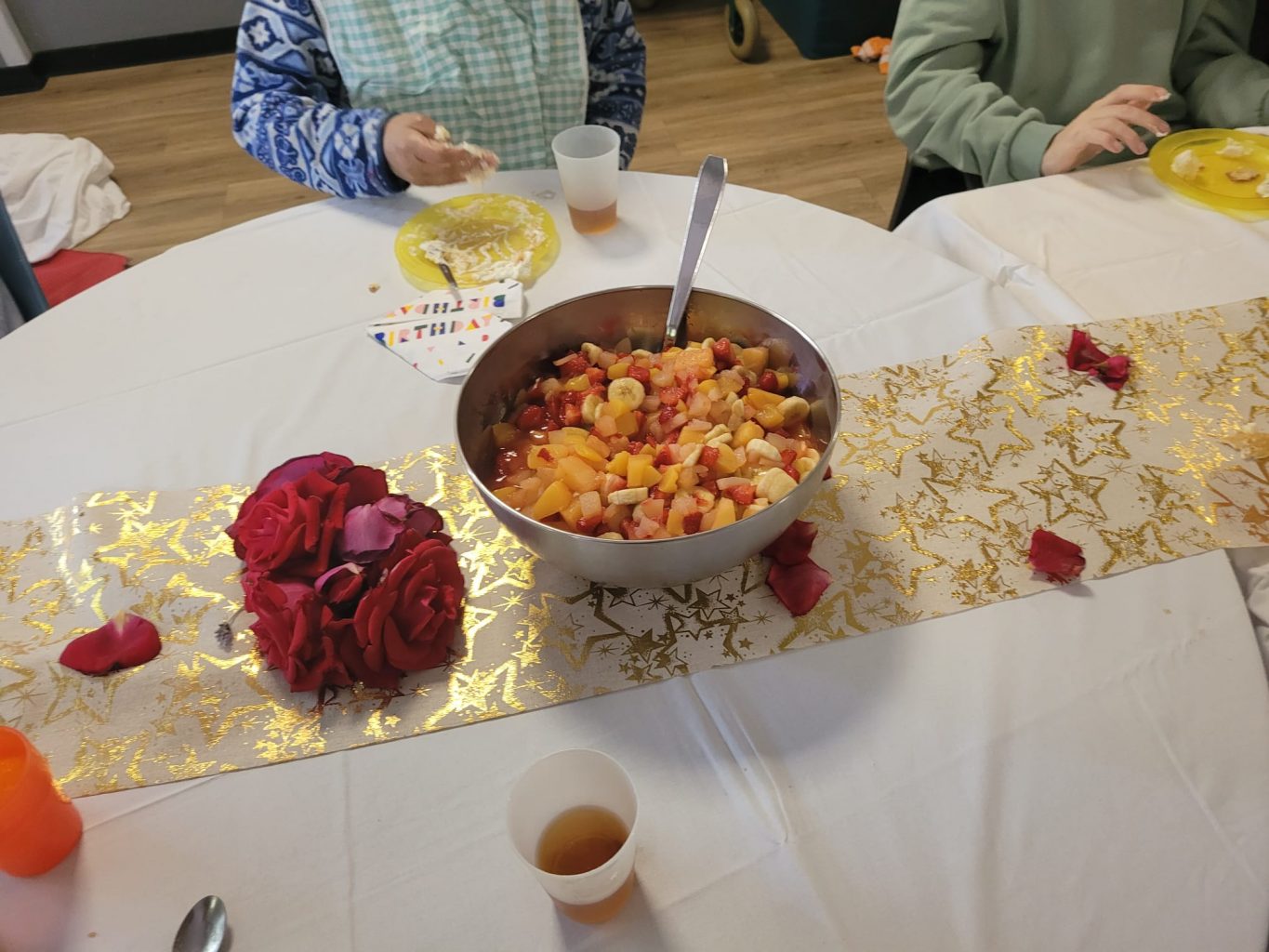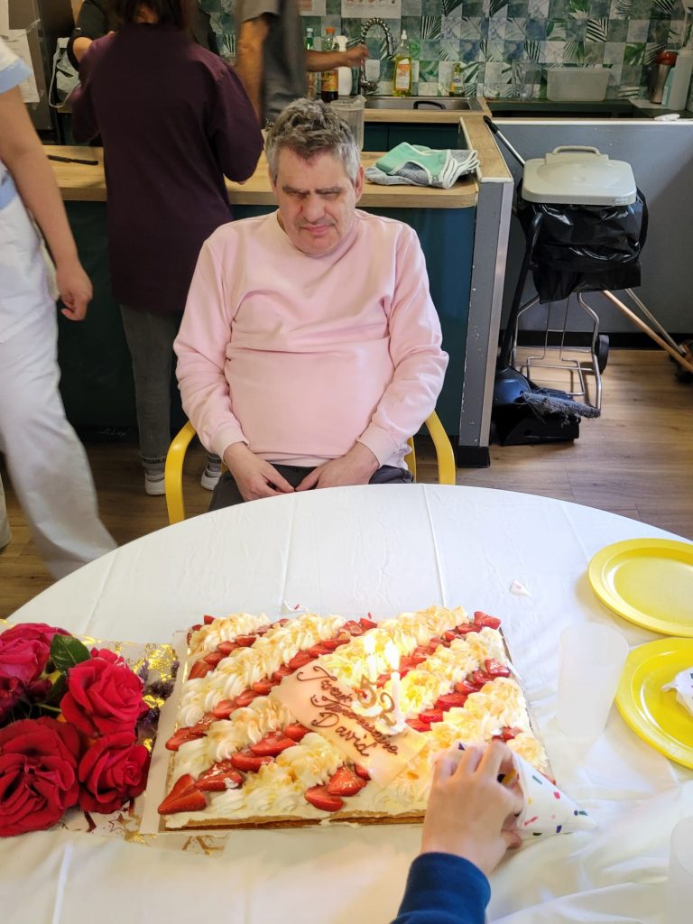 Le 6 mai, tous les résidents des deux unités se sont réunis pour fêter l’anniversaire de David. Au programme : salade de fruits, gâteau, chouquettes et une jolie décoration florale faite de pétales de roses. Un moment convivial et joyeux partagé par tous !