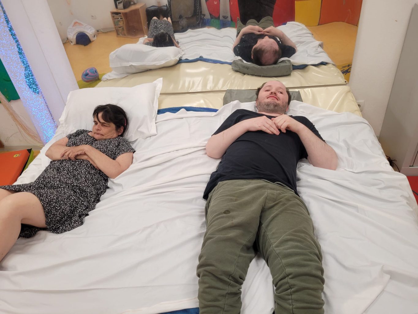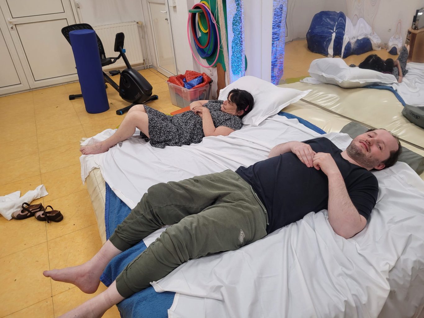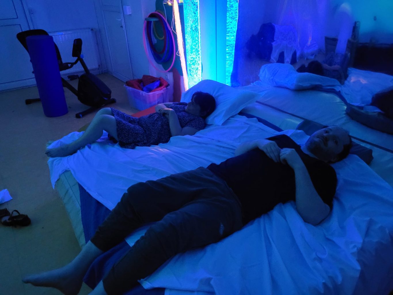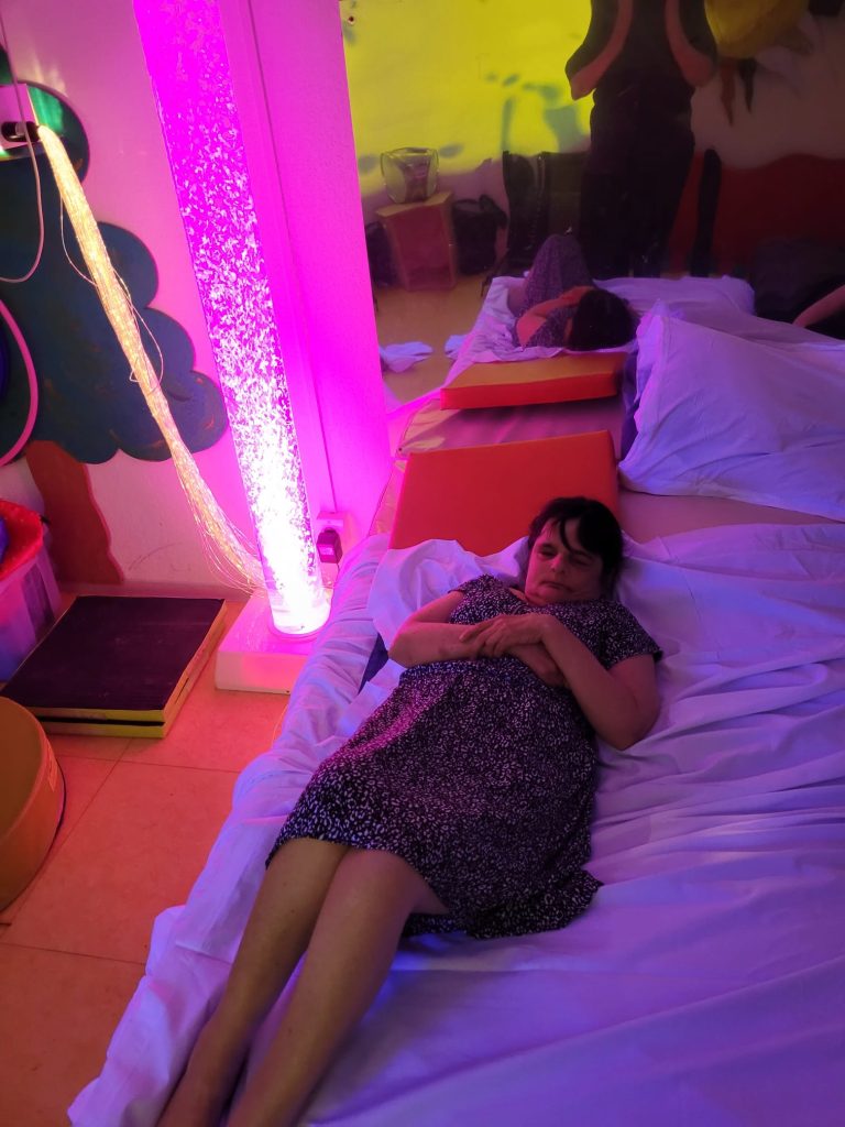 Les résidents profitent aussi de moments de détente en salle Snoezelen avec des effleurages relaxants auprès de Nadia, d’ateliers divers ou de marches tranquilles dans le jardin, au rythme de chacun.