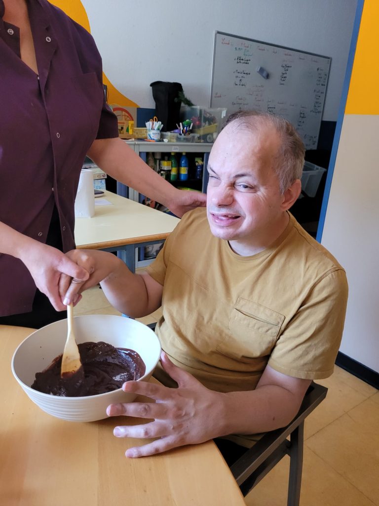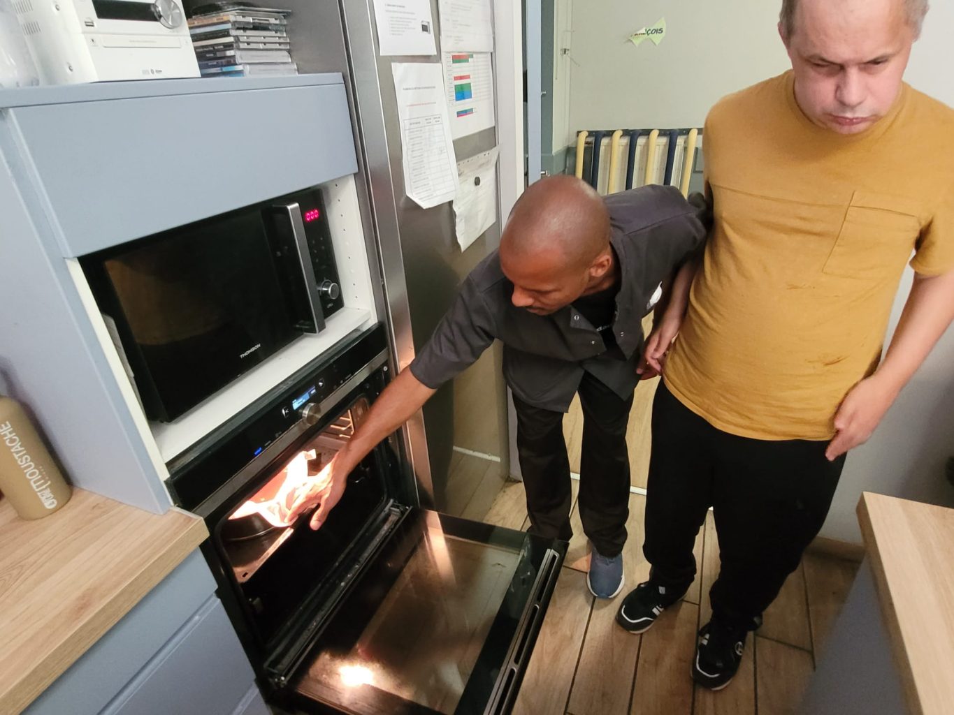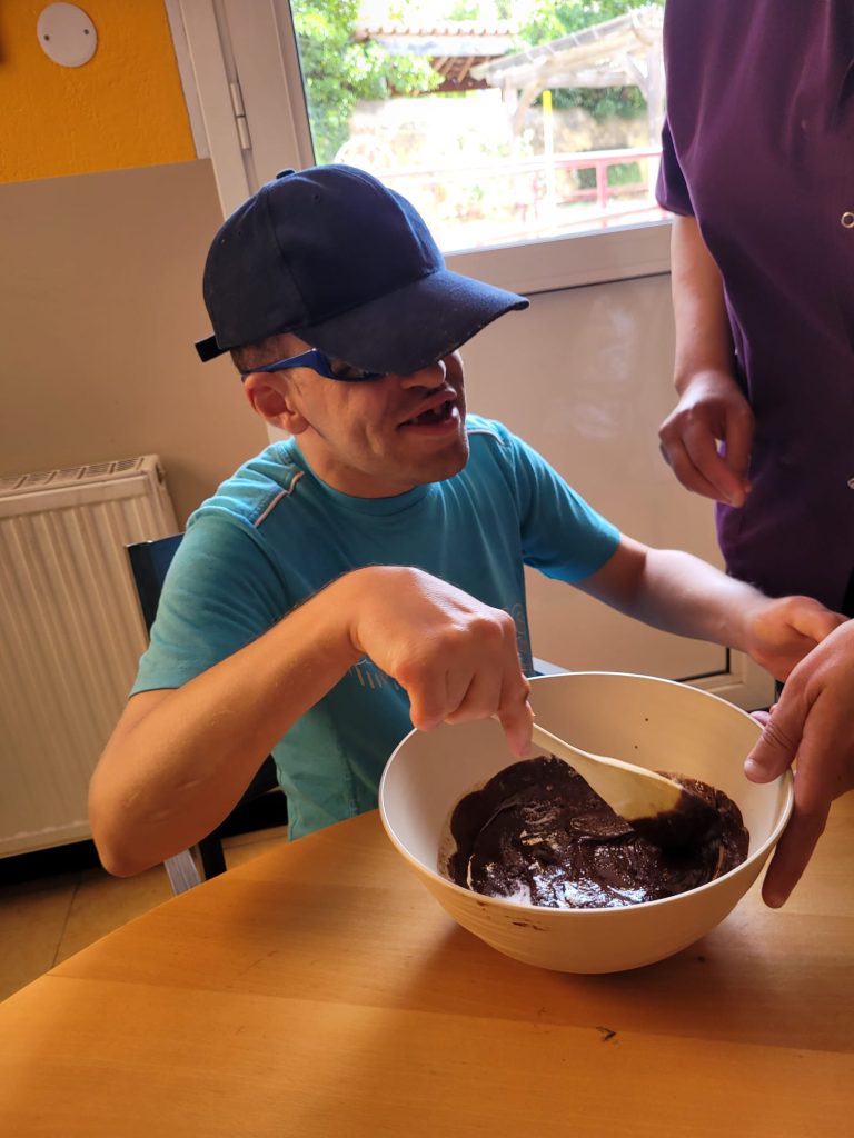 Arthur et Nadia continuent de mener l’atelier cuisine avec les résidents de la MAS qui le souhaitent !
