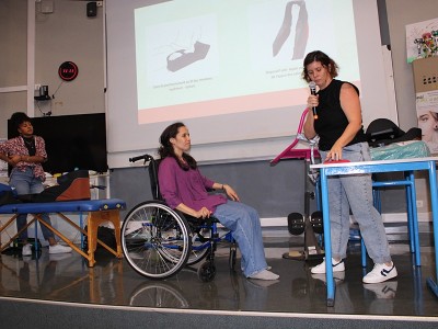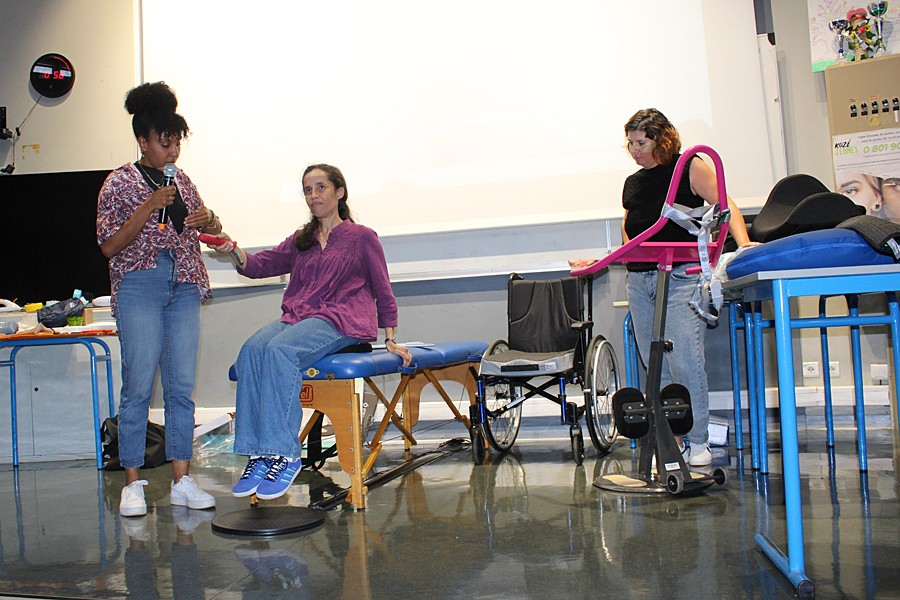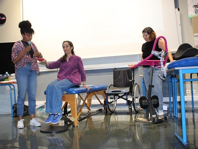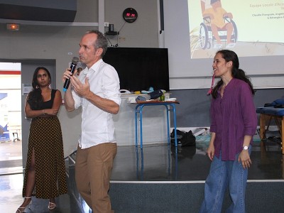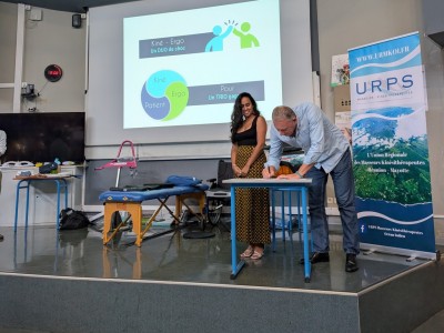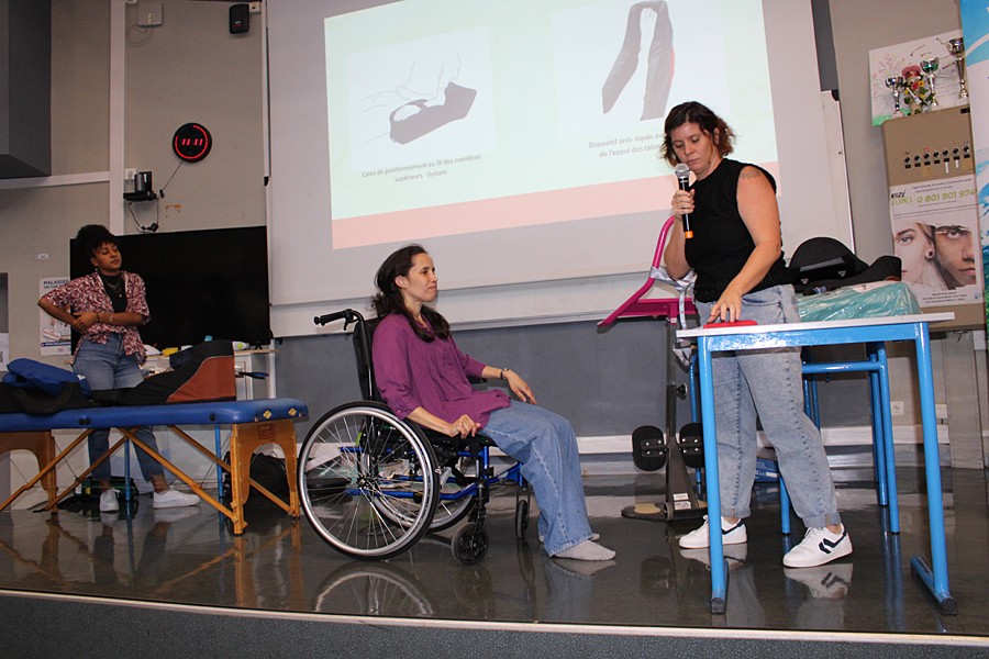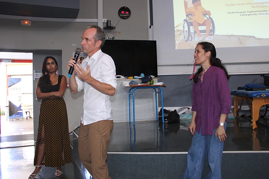 Bérangère ELLY, pilote de projet, Claude ETANGSALE et Angéline BROSSELLIER, ergothérapeutes, ont présenté le dispositif et les aides techniques aux masseurs kinésithérapeute de La Réunion.