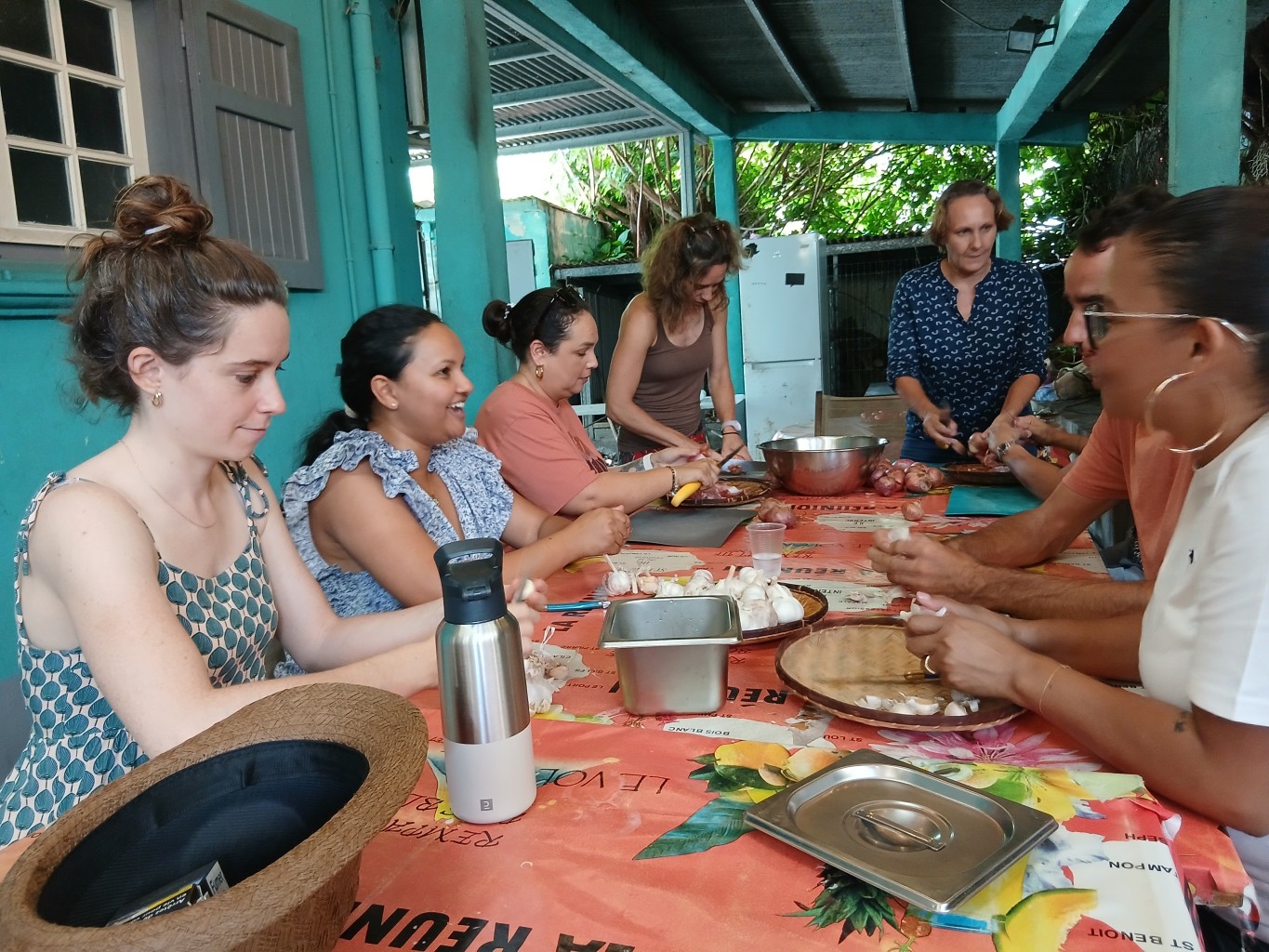 C’est dans l’ambiance chaleureuse du Farfar Créole que nous avons partagé cette journée placée sous le signe de la convivialité. Ensemble, nous avons eu le plaisir de cuisiner des plats locaux, de découvrir ou redécouvrir des spécialités, et le plaisir de préparer un repas en équipe.