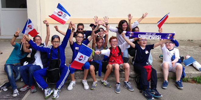 Dans une ambiance incroyable et un stade rempli, tout le monde chante et agite son drapeau en attendant de voir l’équipe de France ouvrir le score. C’est dans les dernières minutes que les bleus inscrivent finalement deux buts, juste devant les jeunes de l’Arc-en-Ciel.