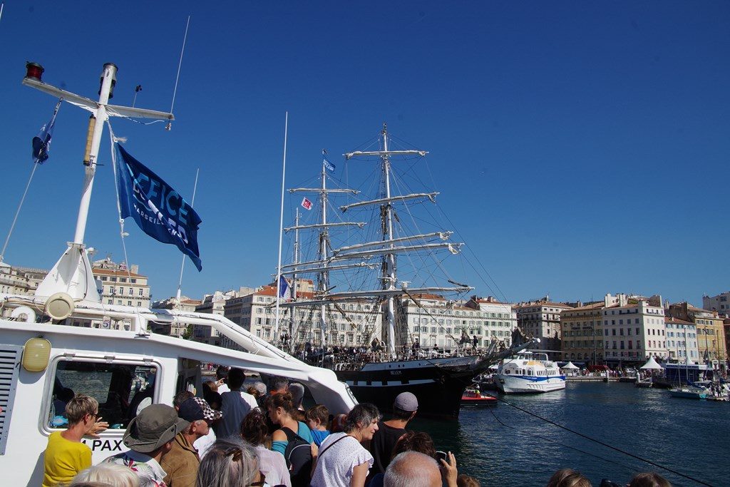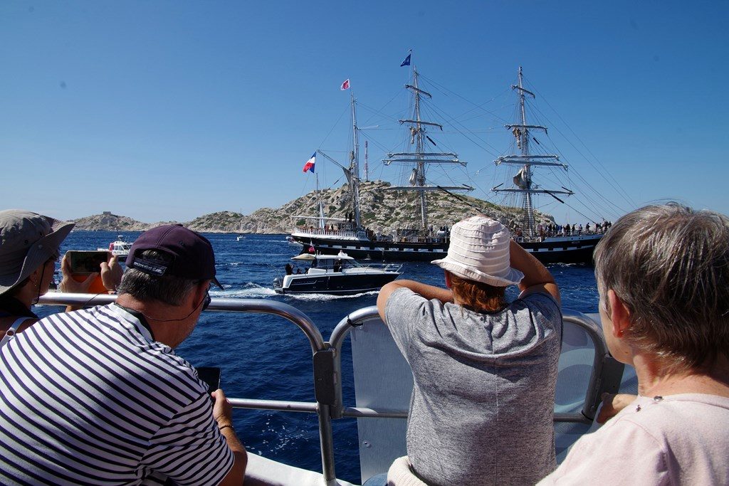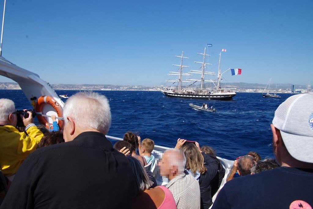 Dommage qu’à cause de la météo il n’ait pu arriver toutes voiles au vent, mais le spectacle était superbe et nous avons fait une belle ballade en mer jusqu’au îles du Frioul !