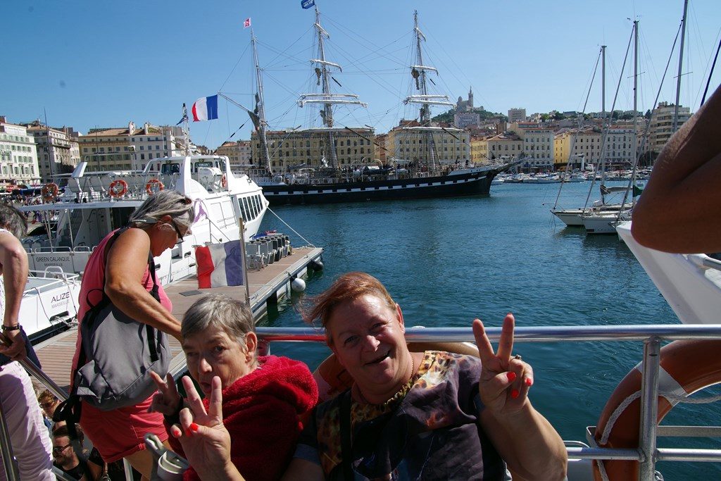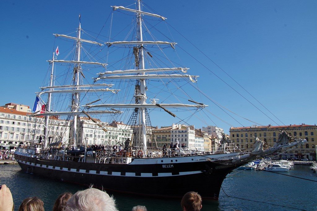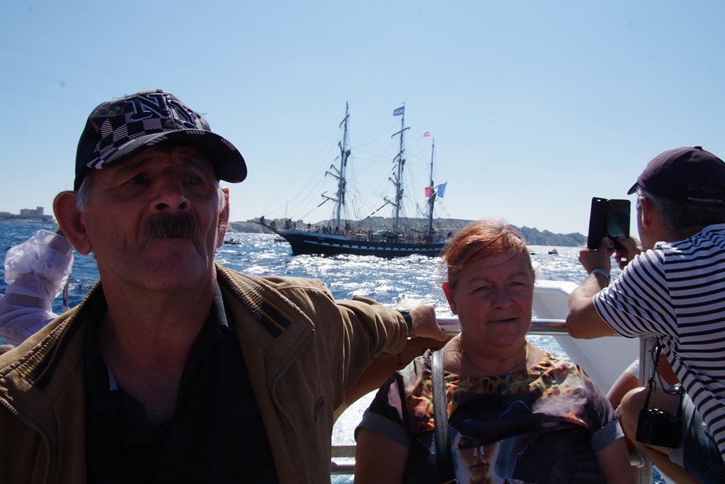 Grace à l’Office de la mer de Marseille, Christiane R, Pilar, Lucien et Doulaziane ont pu assister à l’arrivé du Belem à Marseille !