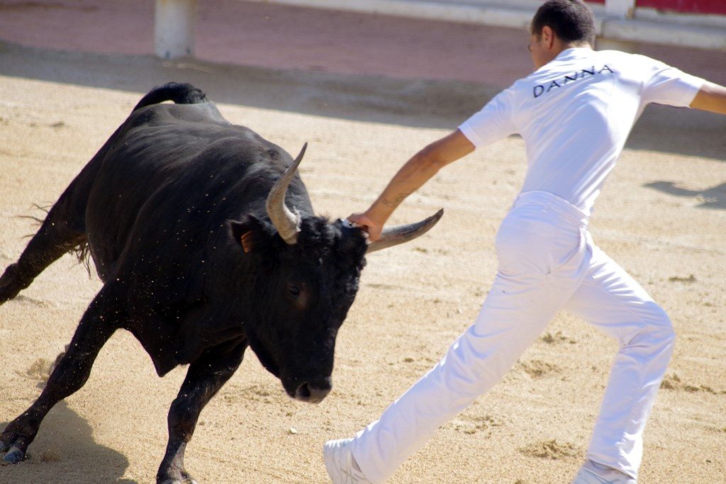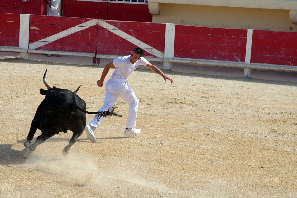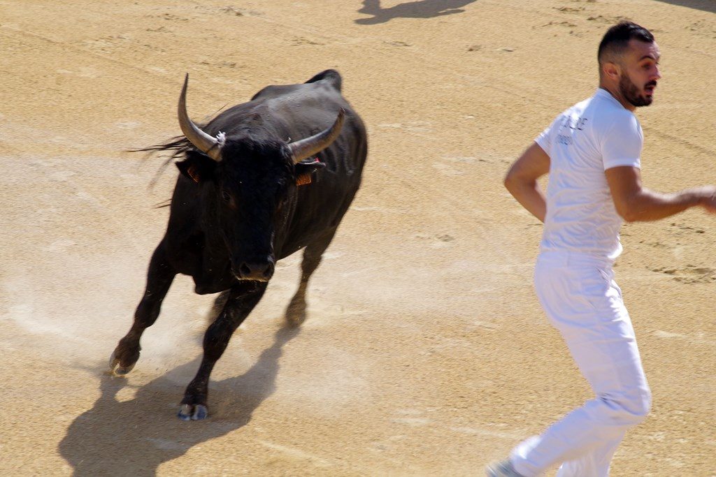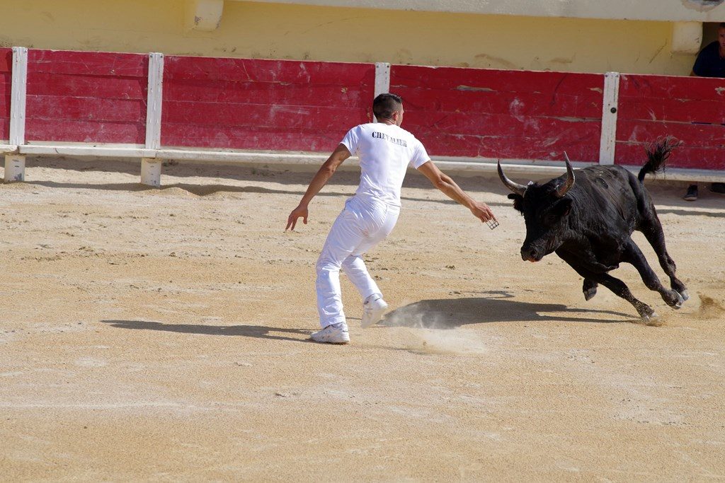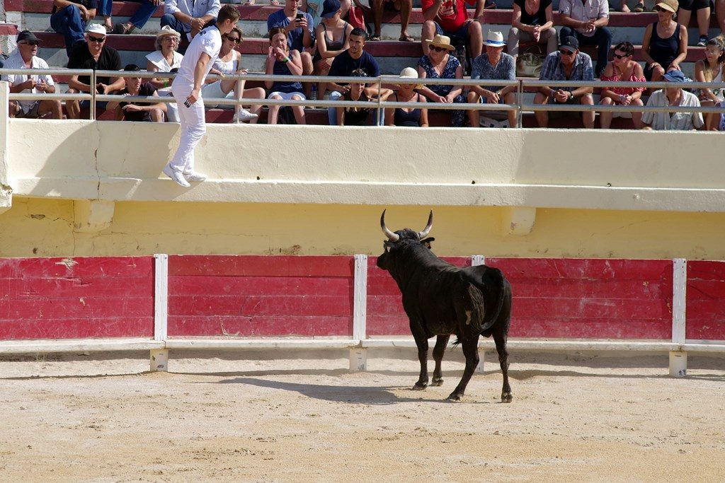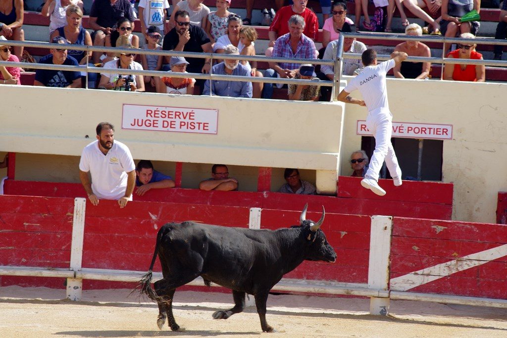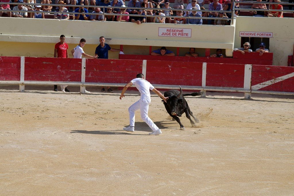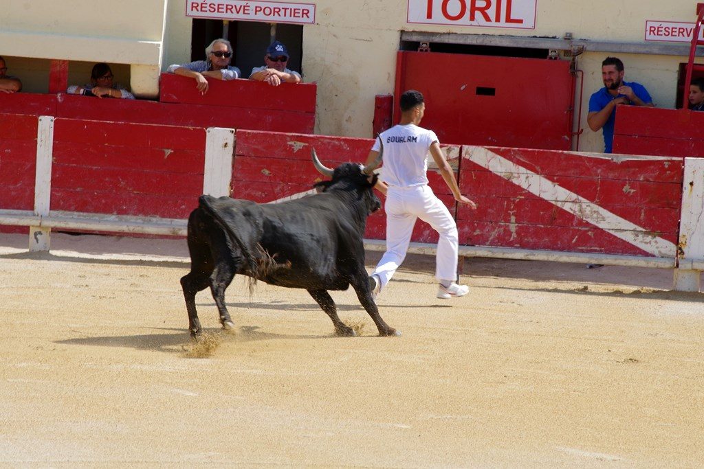 La course camarguaise, ça n’est pas de la Corrida certes, et même si il y a un coté Interville assez amusant, personnellement je regrette et je suis totalement contre le fait que parfois, lorsque les bêtes sautent par dessus les barrières et pour les faire rentrer à nouveau dans l’arène, les organisateurs utilisent des genres de »pics » montés au bout de leurs lances pour faire sortir les taureaux… Les animaux peuvent également se blesser en sautant par dessus les rembardes… Quand aux raseteurs, ils risquent aussi beaucoup mais ça…c’est le risque, c’est le jeu dirons certains…Ce « sport » reste tout de même bien loin des cruelles et pitoyables Corridas et c’est tant mieux !
