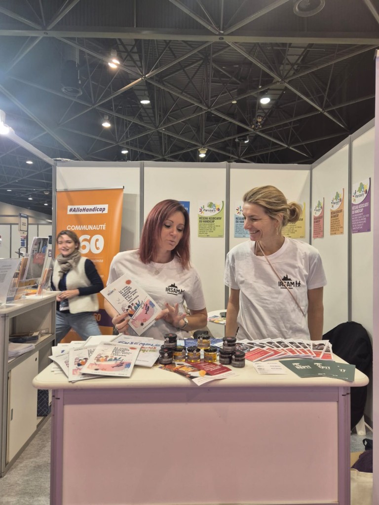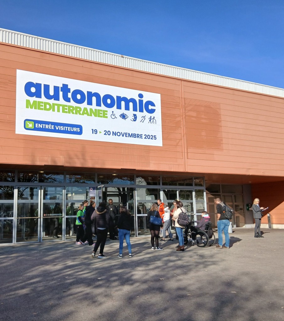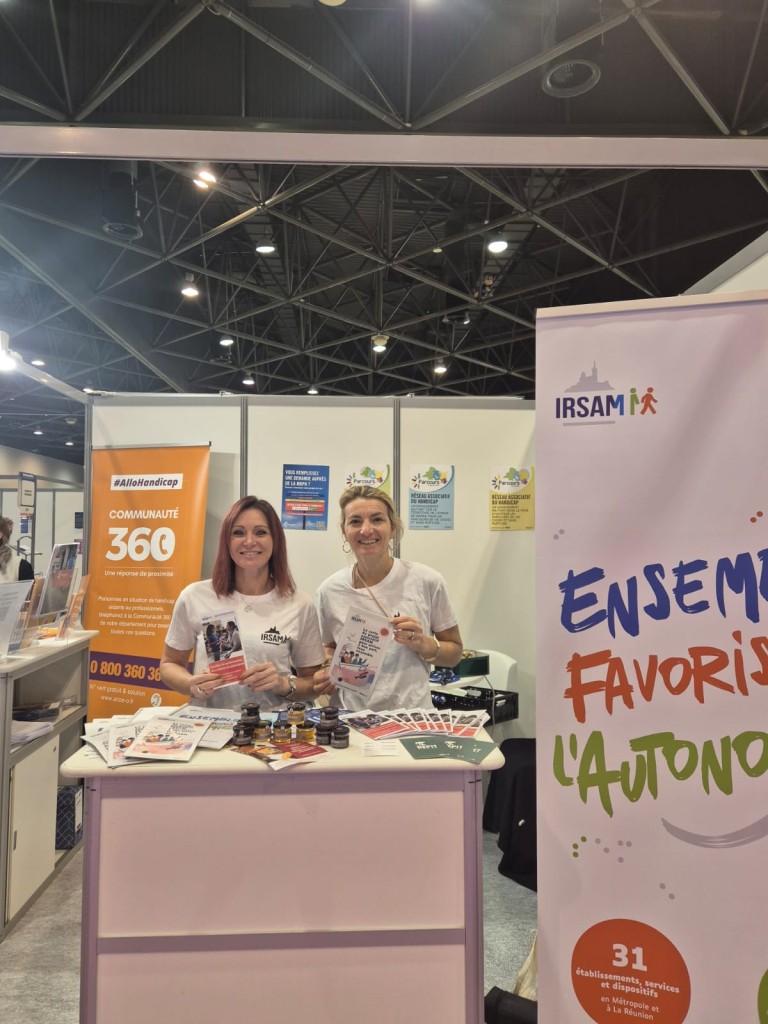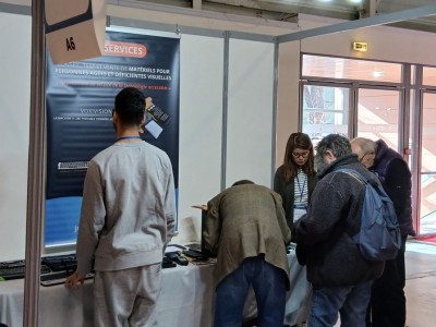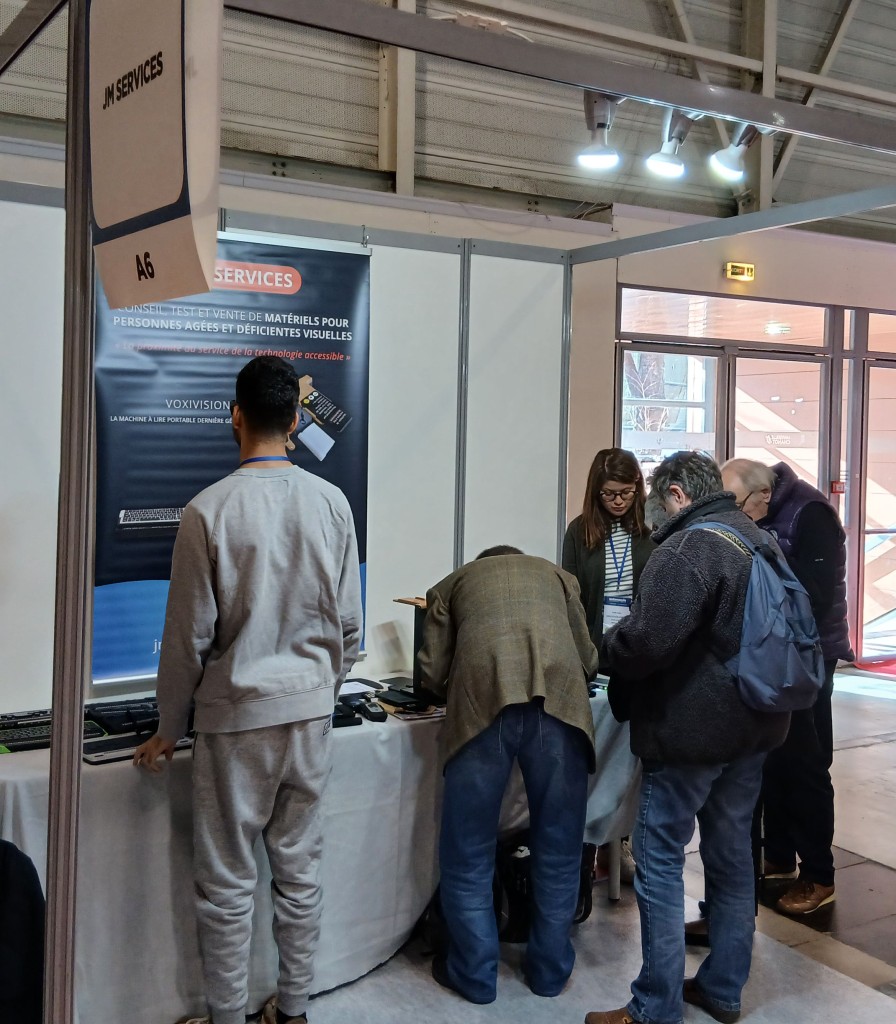 Un moment fort de cette journée : croiser Morgan, un jeune accompagné par notre institut marseillais pour déficients visuels, IRSAM Arc-en-Ciel. Présent sur le stand de JM Services, il a pu découvrir et aider à présenter des outils adaptés au handicap visuel : tablettes braille, dispositifs de lecture, écrans spécialisés… Une immersion riche de sens, rendue possible grâce à son éducatrice référente, Lysiane BOFFA.