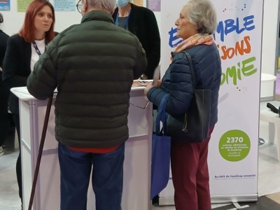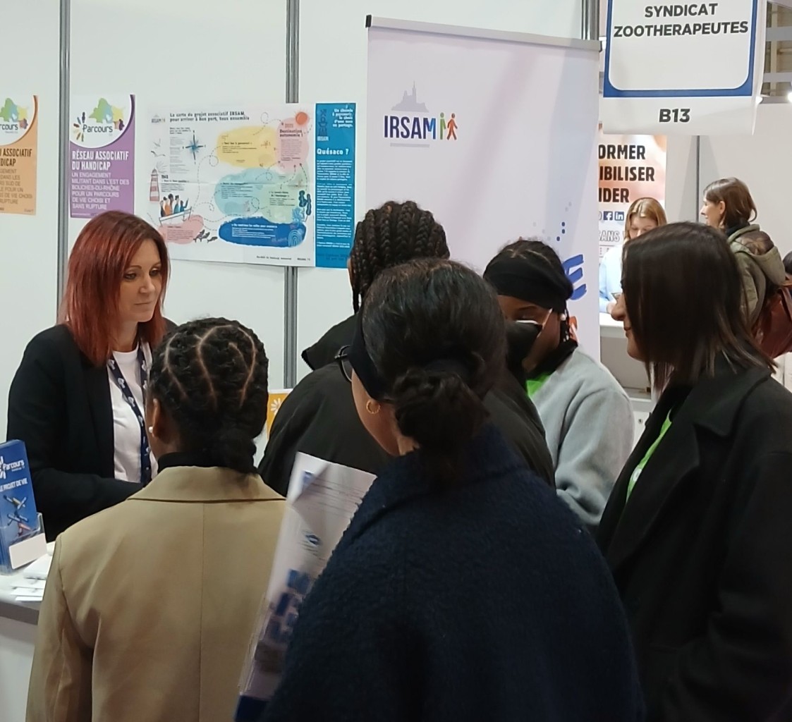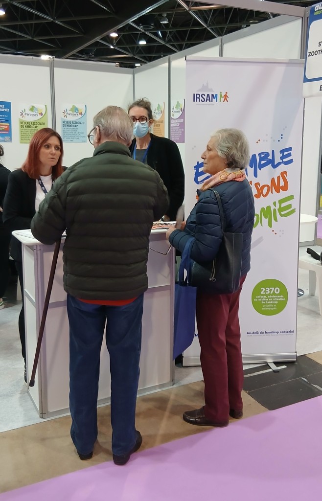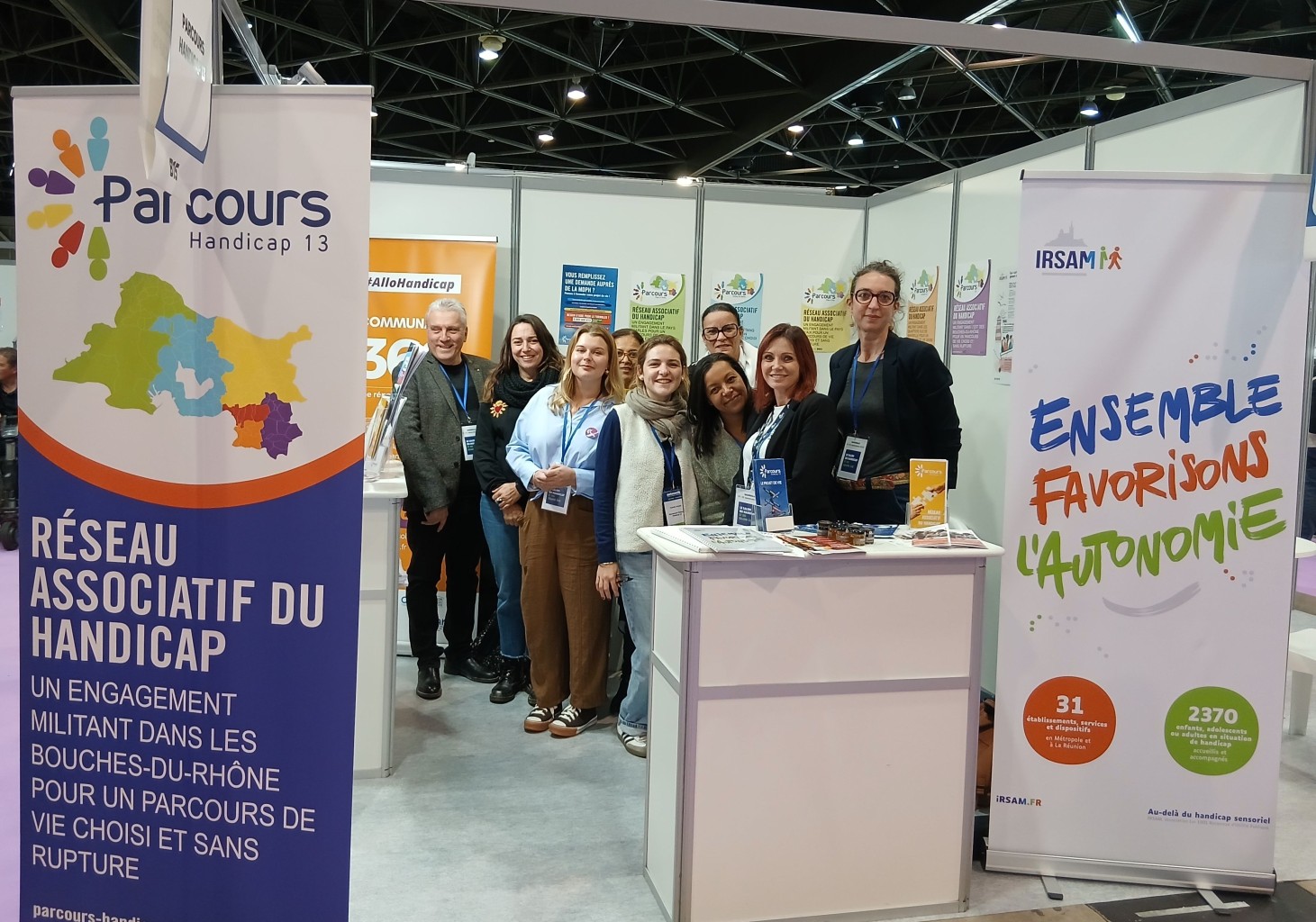 Un moment fort de cette journée : croiser Morgan, un jeune accompagné par notre institut marseillais pour déficients visuels, IRSAM Arc-en-Ciel. Présent sur le stand de JM Services, il a pu découvrir et aider à présenter des outils adaptés au handicap visuel : tablettes braille, dispositifs de lecture, écrans spécialisés… Une immersion riche de sens, rendue possible grâce à son éducatrice référente, Lysiane BOFFA.