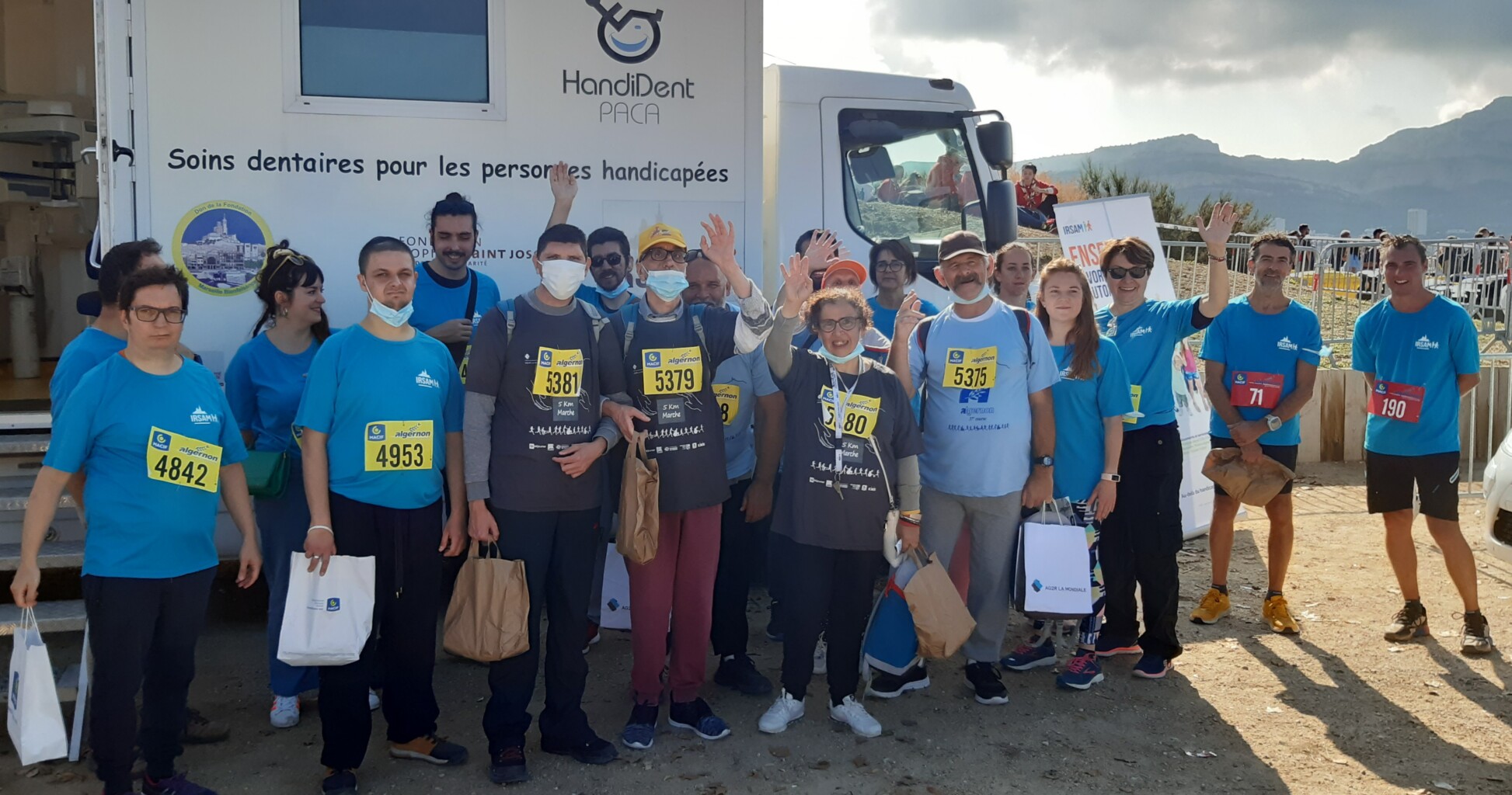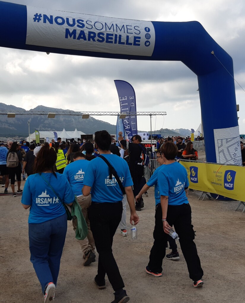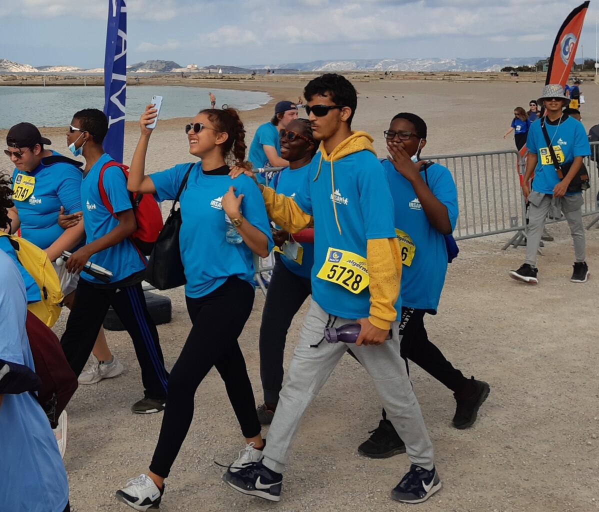 Le dimanche 10 octobre, plus de 80 jeunes, adultes, résidents, salariés ont marché, couru et même dansé… sur la Corniche de Marseille, en arborant leur tshirt bleu IRSAM et surtout une grande joie de retrouver le plaisir d’être ensemble et de se dépasser.