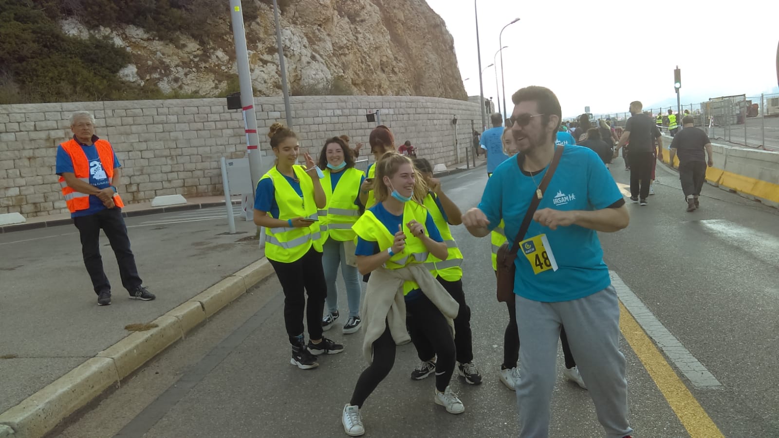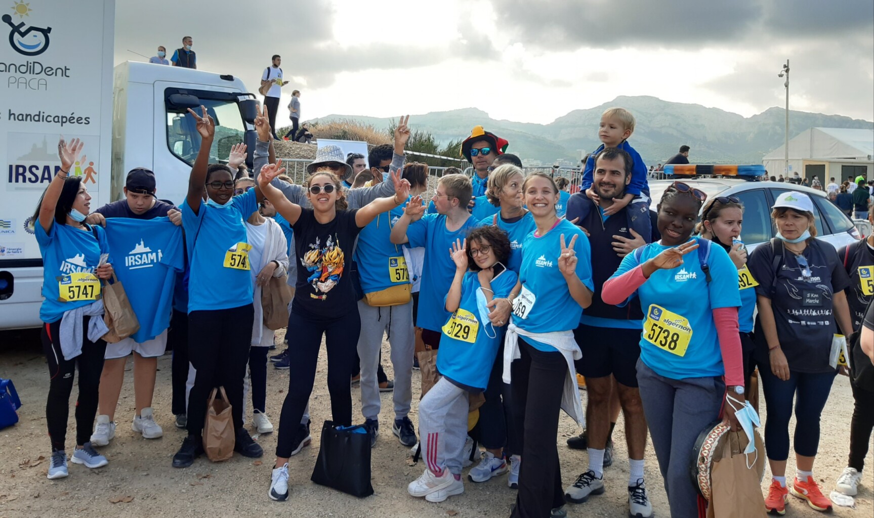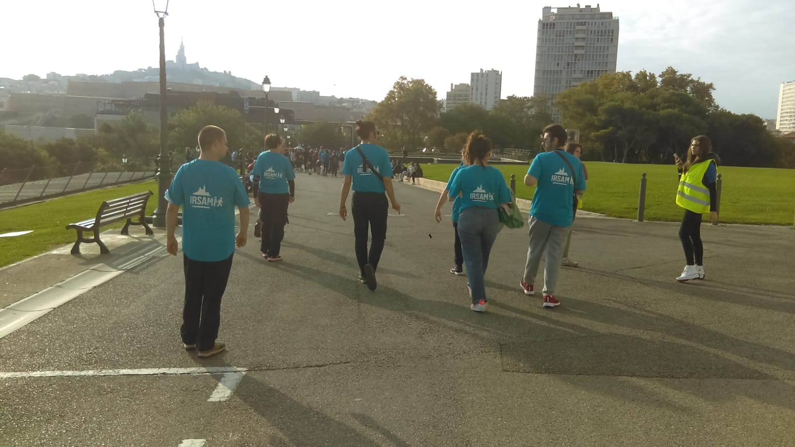 Le dimanche 10 octobre, plus de 80 jeunes, adultes, résidents, salariés ont marché, couru et même dansé… sur la Corniche de Marseille, en arborant leur tshirt bleu IRSAM et surtout une grande joie de retrouver le plaisir d’être ensemble et de se dépasser.