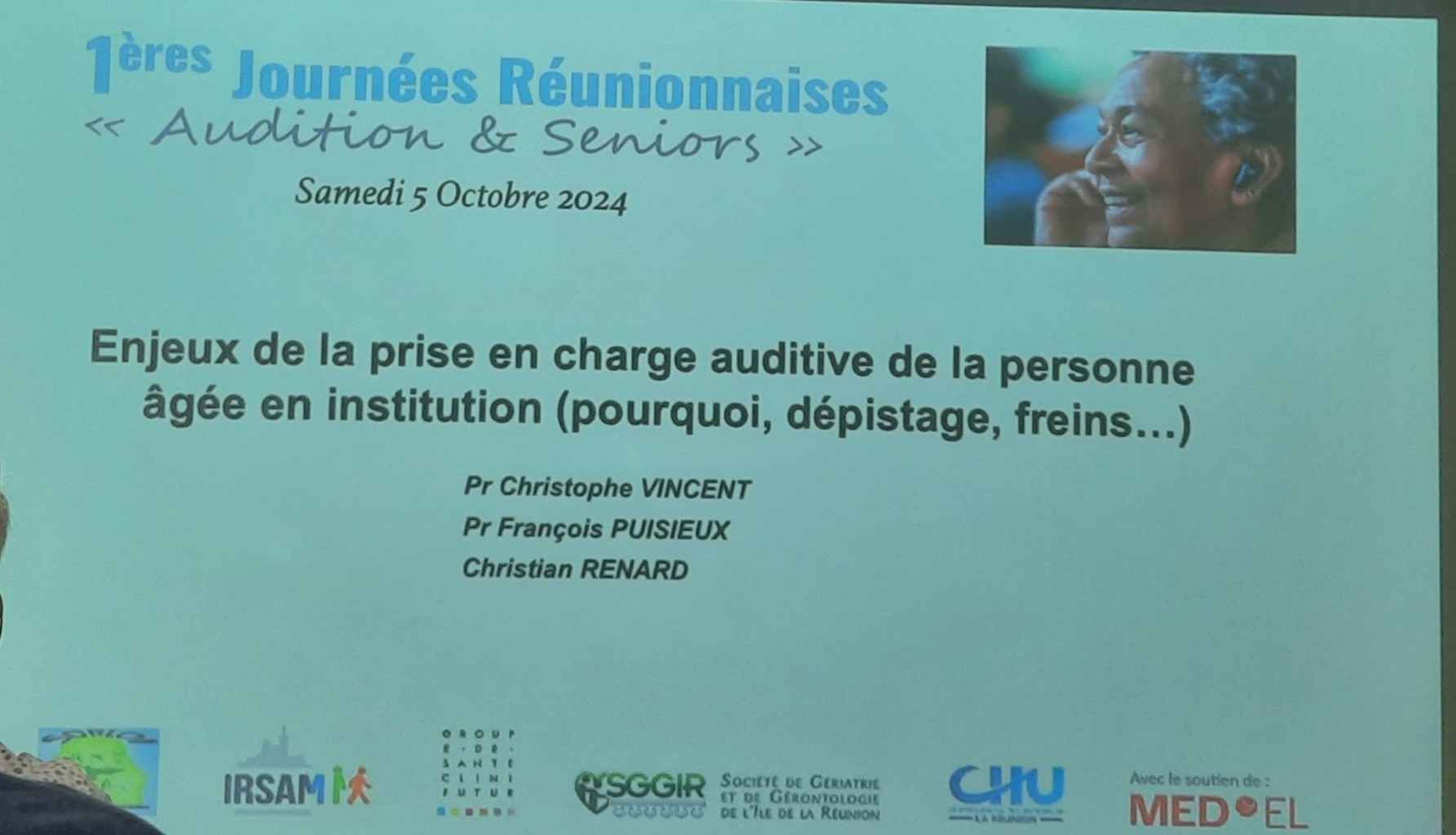 Dr Kheira MEZOUAGHI et Dr Jean-François VELLIN, praticiens ORL CRCSI ont animé avec Dr Jean-Marc EYCHÈNE, gériatre CHU de La Réunion les débats sur les actualités en audiologie et les enjeux de la prise en charge auditive de la personne âgée en institution.