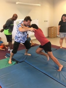 Le judoka est récemment venu passer quelques semaines de vacances à la Réunion et en a profité pour rencontrer ces jeunes pour les initier à l’art du judo. Son épouse lui traduisait les échanges avec les enfants et professeurs, en signant dans sa main. Les enfants très impressionnés au départ par la carrure imposante de Cyril, lui ont offert un cadeau réalisé en pâte fimo, qui représente des sumos autour d’un tatami. Le champion très touché a alors présenté son kimono et sa ceinture, sous les yeux émerveillés des jeunes. Une fois les présentations faites, le cours a débuté par un échauffement très ludique ; chaque élève a ensuite pu apprendre quelques prises et affronter Cyril. Il est devenu, pour sûr, l’exemple à suivre et le modèle de ces jeunes déficients sensoriels, à qui il a montré que rien n’est impossible à qui le veut vraiment.