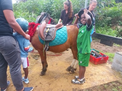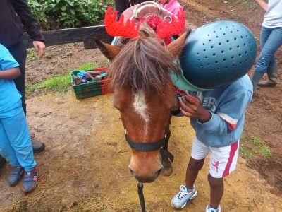 Déployé les mercredis en période scolaire au centre équestre du Maïdo, ce projet s’inscrit dans une approche globale du développement de l’enfant. L’équithérapie, en tant que médiation corporelle, mobilise le cheval comme support thérapeutique afin de favoriser la motricité, la régulation émotionnelle, la communication et les interactions sociales, dans un environnement sécurisant et stimulant.