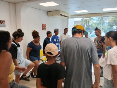 « Ecoute ce que je vois » est un projet qui réunit des personnes sourdes, des entendantes, des amateures et des professionnelles, autour du théâtre d’improvisation. Entre octobre 2024 et avril 2025, la Cie La Bagasse a mené ce laboratoire de théâtre improvisé en partenariat avec IRSAM La Ressource et La Cité des Arts, avec le soutien de la DAC, de l’ARS, de la Région et du Département de La Réunion dans le cadre de l’appel à projets « Culture et Santé ».