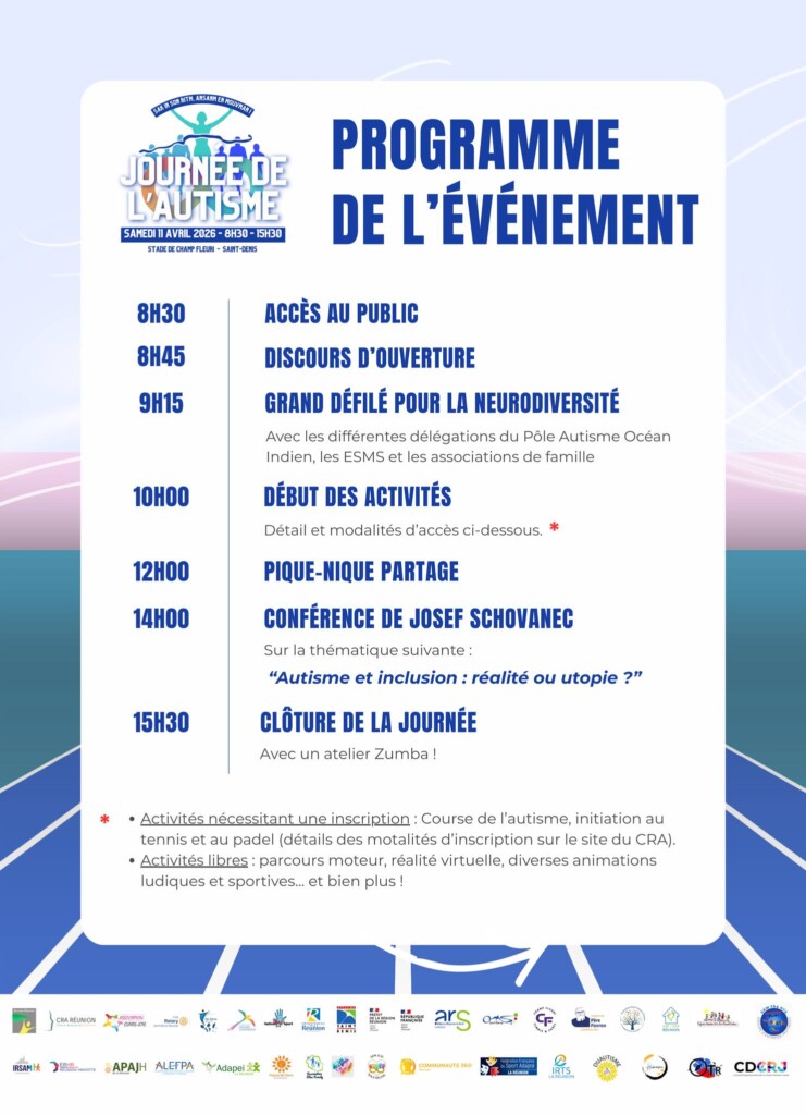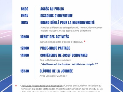 Le 11 avril 2026, le stade de Champ Fleuri a accueilli une journée de sensibilisation à l’autisme organisée par le Centre de Ressources Autisme Réunion, en partenariat avec la Ville de Saint-Denis. De nombreuses structures du territoire étaient mobilisées parmi lesquelles IRSAM Les Cascavelles.