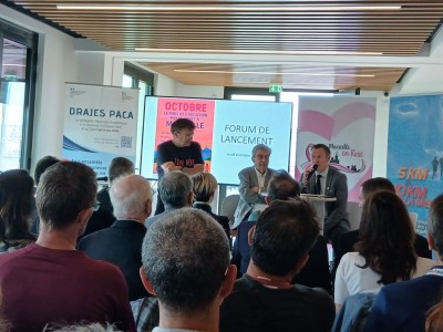 Après un accueil sur les toits de La Provence, face à la Bonne Mère, Patrick MONTEL a présenté les quatre événements sportifs et introduit les intervenants. Parmi eux, André Giraud, illustre figure de l’athlétisme marseillais, instigateur de la classique Marseille-Cassis et ancien président de la Fédération Française d’Athlétisme, a expliqué la naissance de ce projet. L’objectif : rassembler plusieurs courses pour faire d’octobre un mois dédié à l’inclusion, en soulignant le rôle essentiel du sport pour surmonter des difficultés et créer du lien social.