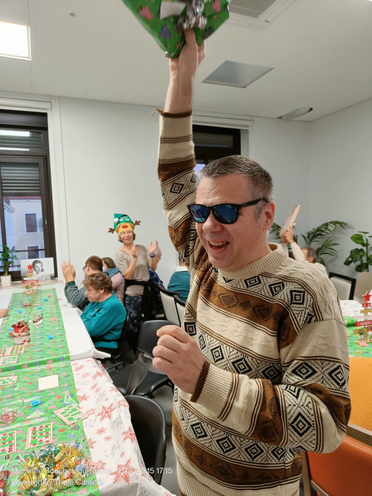 Les professionnels et personnes accompagnées par le foyer IRSAM Les Nénuphars ont célébré Noël le 15 décembre après-midi autour d’un grand loto ! Cette activité est organisée chaque trimestre, mais le Loto de Noël, qui a lieu chaque année, reste particulier et spectaculaire pour les résidents du foyer. Ils font d’ailleurs partie intégrante de l’organisation de cette journée : choix de la date, organisation pour l’achat des lots (une sortie est organisée pour celui-ci), choix du repas, emballage des cadeaux…