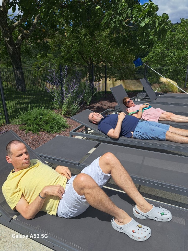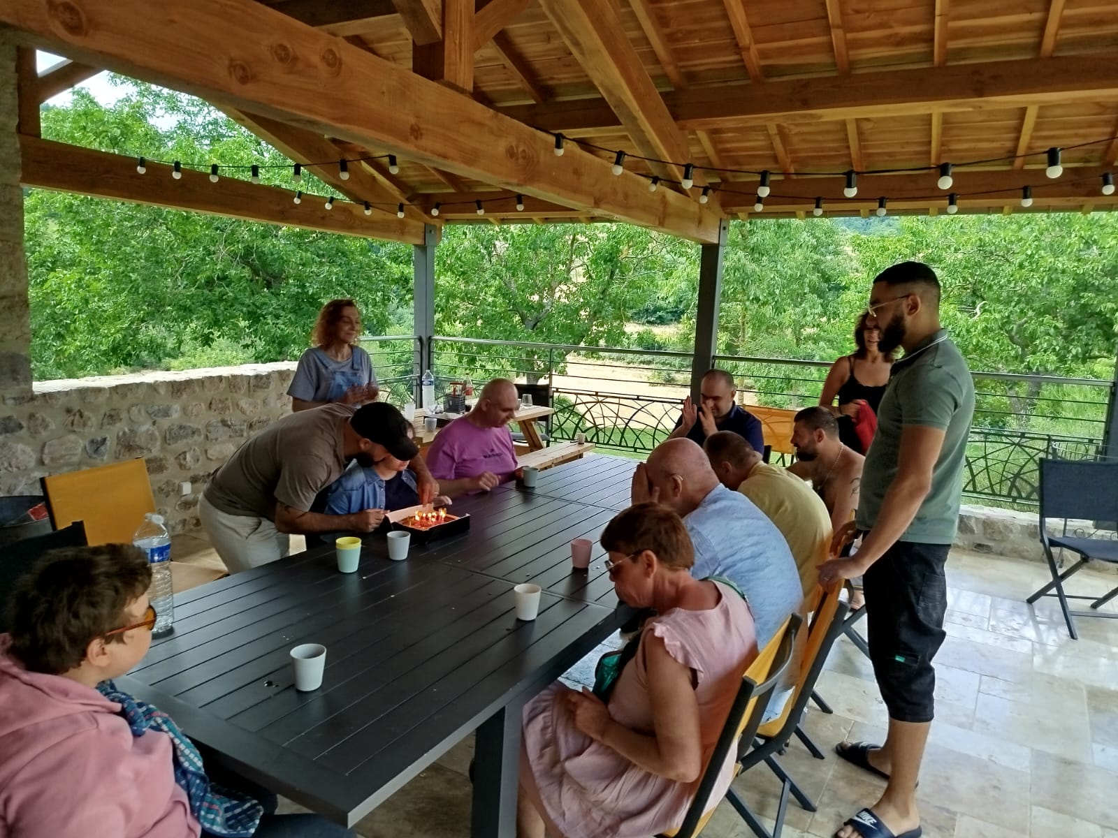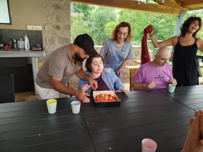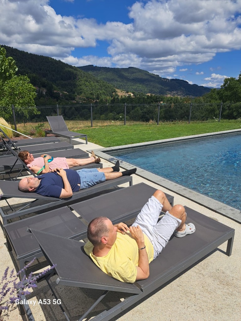 Au programme: Balade au marché de Lamastre, détente aux terrasses des troquets ardéchois, baignade dans la piscine du gite, visite de la châtaigneraie de st Barthélémy, soirées apéros barbecues et surtout une fête d’anniversaire… Celle de Caroline!