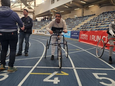 » Alfred prêt a prendre le départ de la course fauteuil ! «