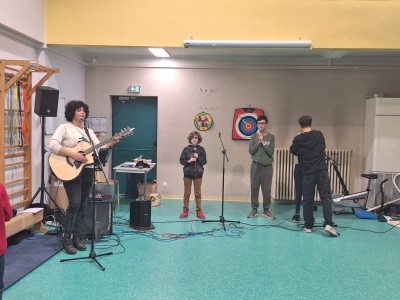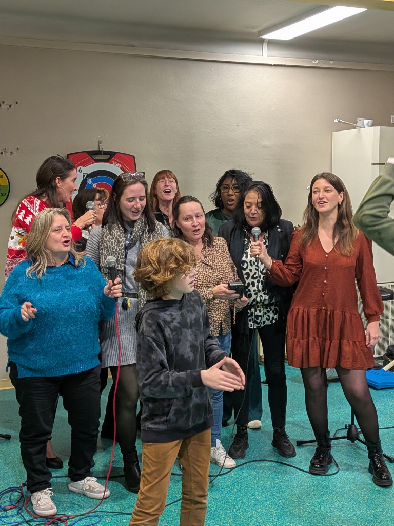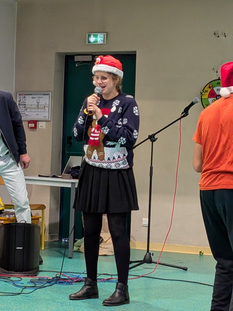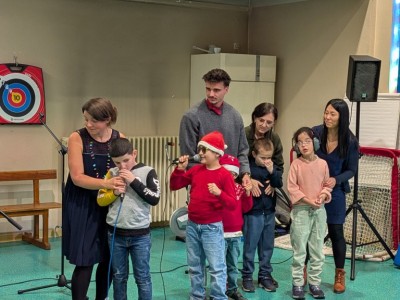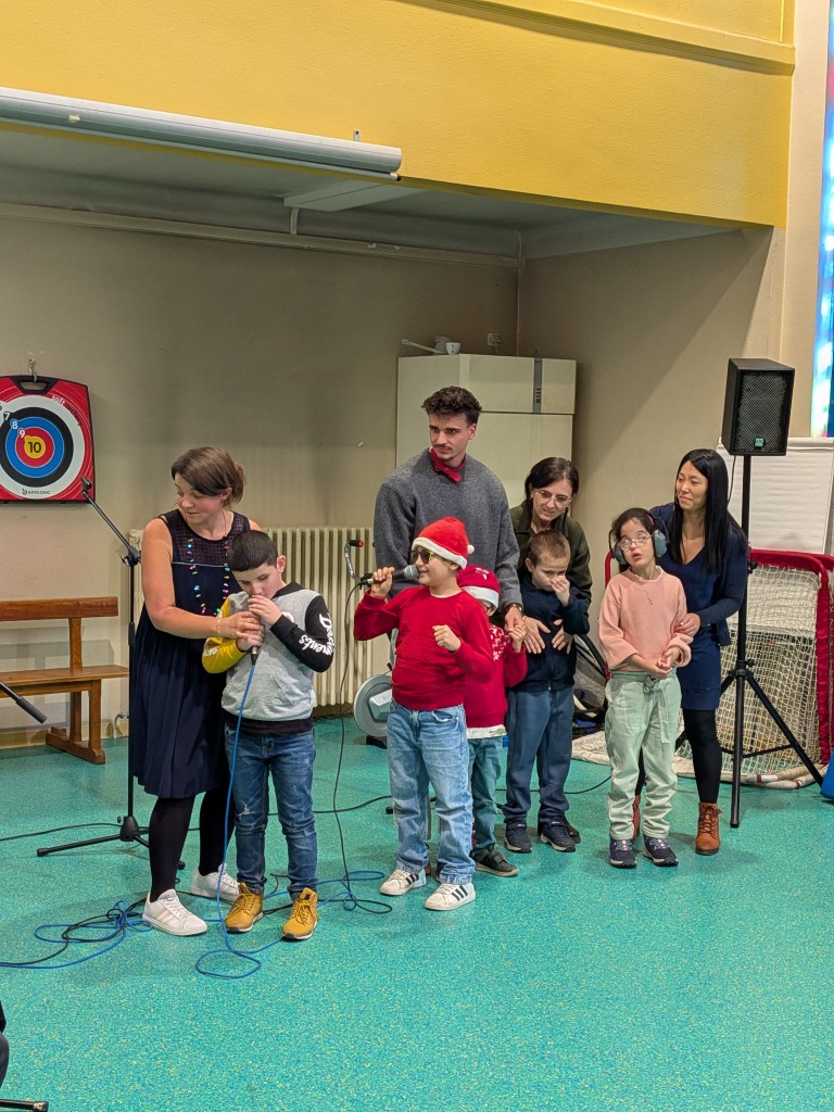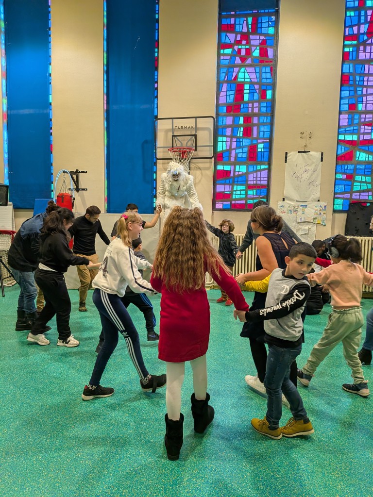 L’après-midi, le gymnase s’est animé avec des ateliers de chants et différentes animations, dans une ambiance joyeuse et festive. Et bien sûr, le Père Noël n’a pas manqué le rendez-vous : il a fait son show, pour le plus grand plaisir des jeunes… et des adultes !