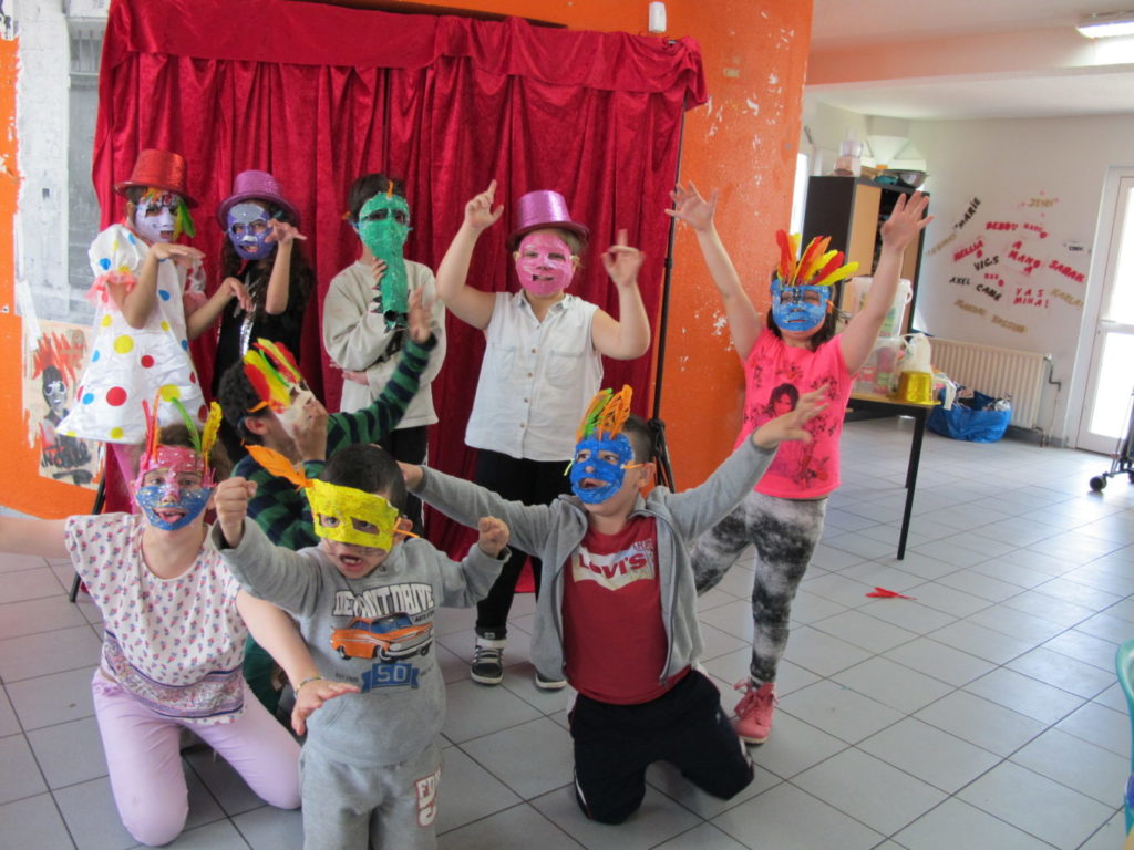 Un autre projet de théâtre a été également entrepris en avril, avec un autre groupe d'enfants, à Miramas, accompagné de 2 éducatrices spécialisées, Coralie Chabran et Emilie Gramain sur le thème suivant "le théâtre à travers l'expression corporelle et visuelle, l'impro dans tous ses états !" . Ce travail a duré 3 jours et les enfants étaient très motivés et heureux, ce qui a donné un travail de qualité. Ils ont dans un premier temps  fabriqué des masques et ensuite ils ont mis en scène des jeux théâtraux improvisés. La personnalité et l'imagination de chaque enfant étaient la source de départ du travail, ce qui a permis de réaliser des "mini-saynètes" chantées en LSF ou racontées en costume. L'expression corporelle et visuelle prit ainsi une place importante et rendit l'expérience très enrichissante pour les enfants ainsi que pour les professionnels.