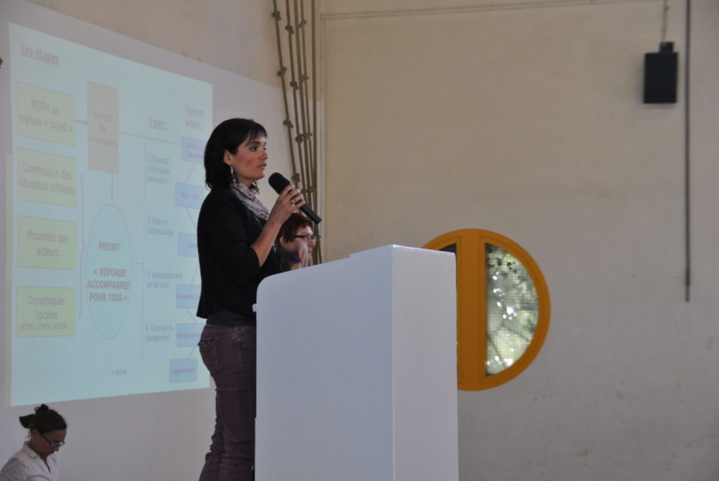 Cette inauguration a débuté par une conférence avec différentes interventions : le dispositif intégré des équipes relais handicaps rares par Mme Mireille Prestini, chargée de mission à la CNSA ; Les enjeux sur le territoire régional pour les personnes en situation de handicaps par Mme Sophie Rios, responsable du services Personnes handicapées à l’ARS PACA ; le travail en réseau dans les Alpes de Hautes Provence par Mme Mélanie Brovelli directrice de la MDPH 04 et une expérience innovante dans l’accompagnement de l’enfant polyhandicapé et sa famille à domicile par le Docteur Antoine Chaanine, médecin et représentant de l’association Handimômes.