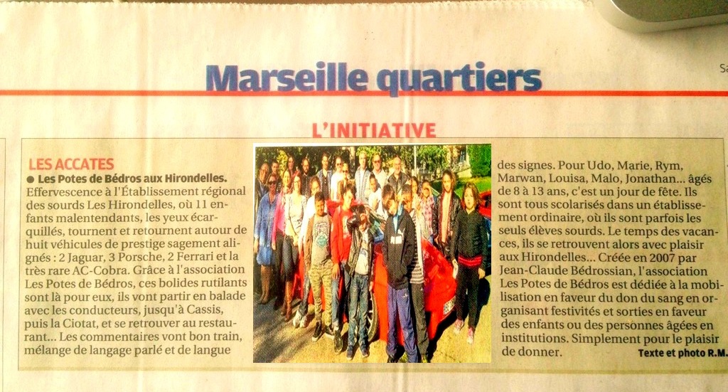 Huit voitures de prestige : 2 Jaguar, 3 Porshe, 2 Ferrari et 1 AC-Cobra étaient là pour eux afin de partir en balade avec les conducteurs jusqu'à Cassis puis La Ciotat, afin de se retrouver tous ensemble au restaurant et partager un moment de joie et de simplicité !
