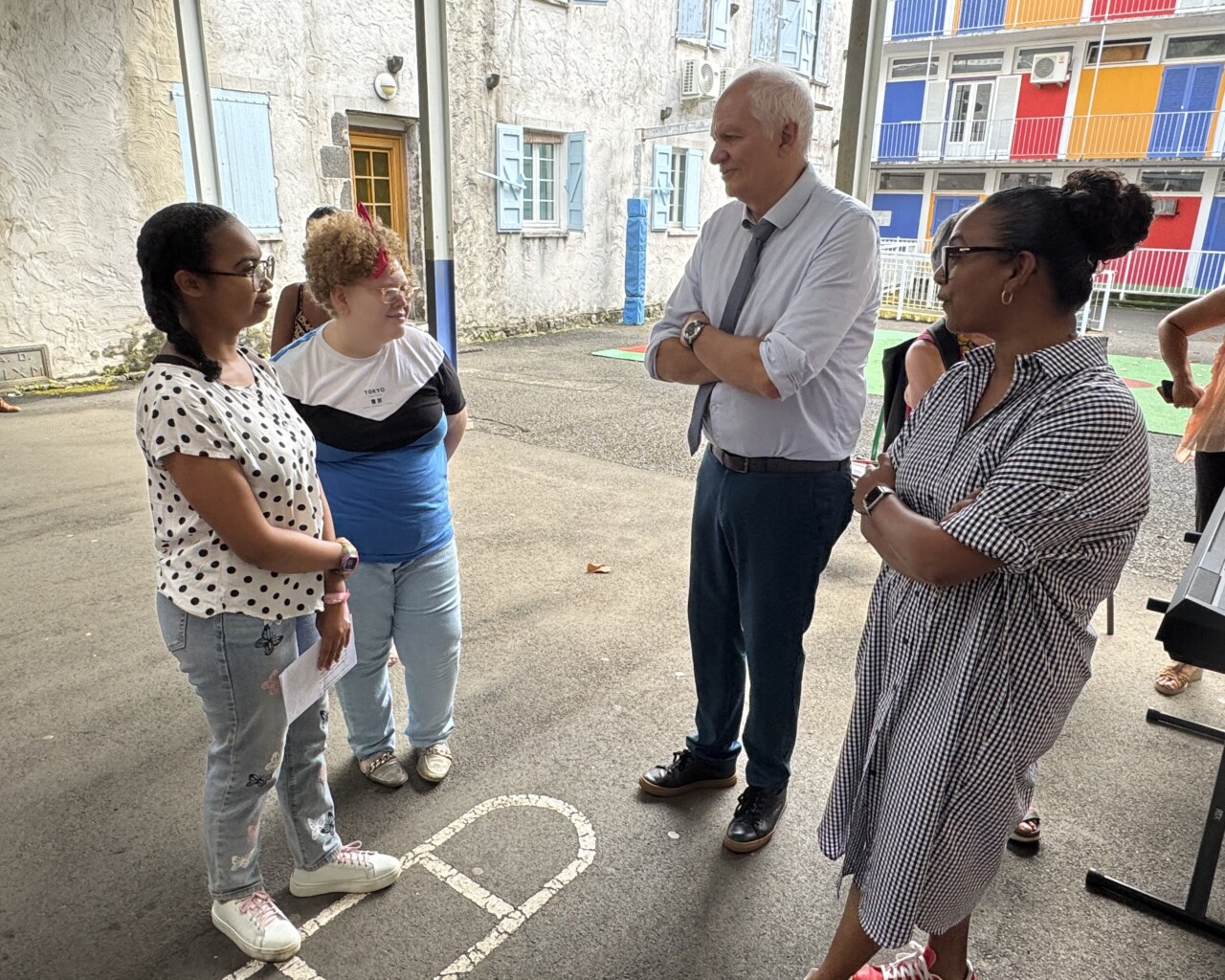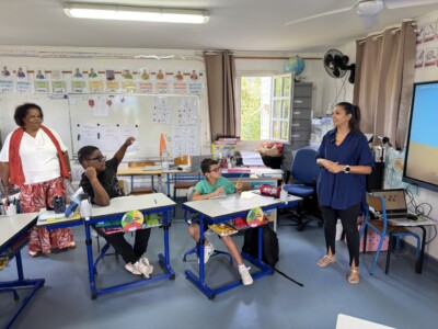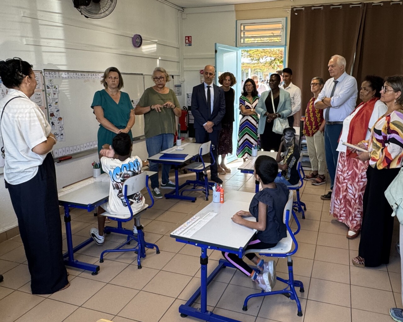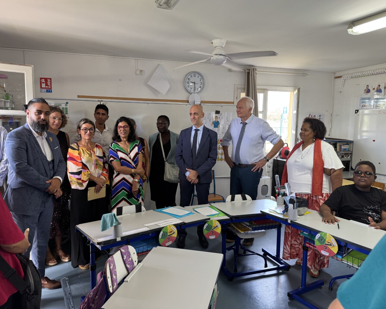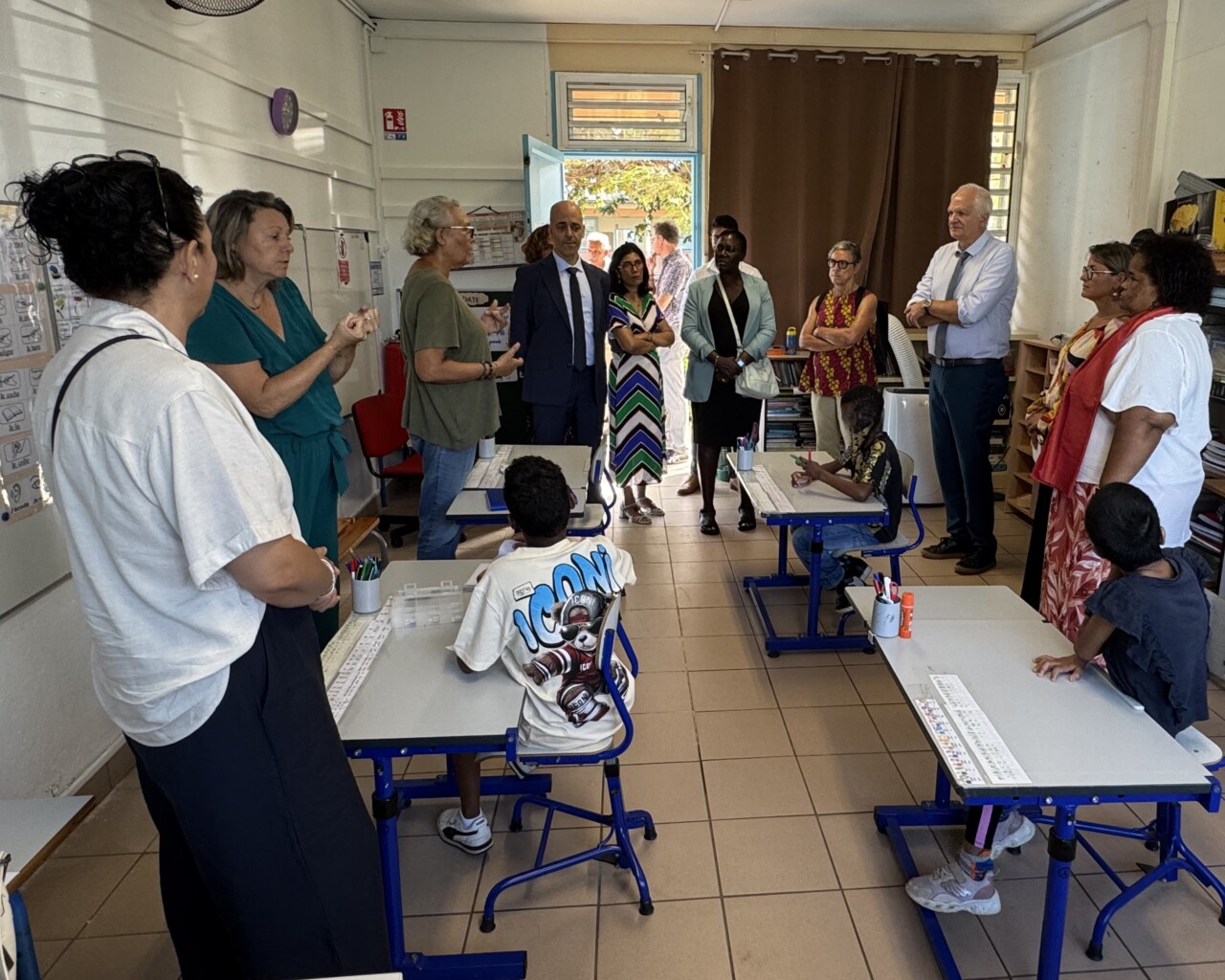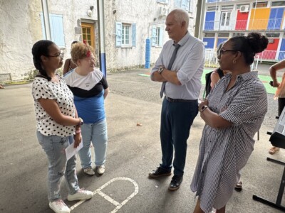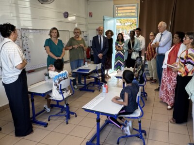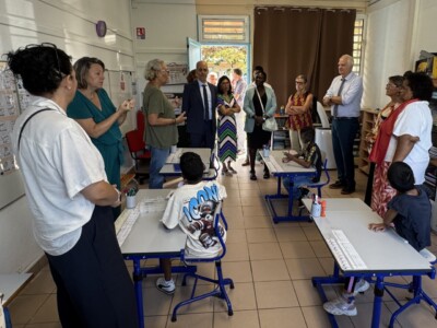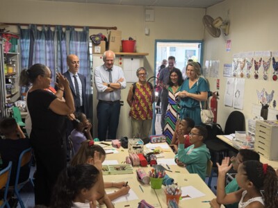 Cette visite s’est déroulée en présence de la directrice IRSAM La Ressource, Christine BRUN ainsi que de Carole PERROUAULT, Directrice Adjointe, Béatrice HYPOLYTE, Référente Pédagogique, et Colombine GRONDIN, Cheffe de service et plusieurs représentants institutionnels, dont Alexandre LAÏ-KANE-CHEONG, Maire de Sainte-Suzanne, Yacin KARIM, Directeur Académique des Services de l’Éducation Nationale (DASEN), Astou BAILLIET, Inspectrice de l’Éducation Nationale, et Patrice RIQUEBOURG, Directeur de l’école.