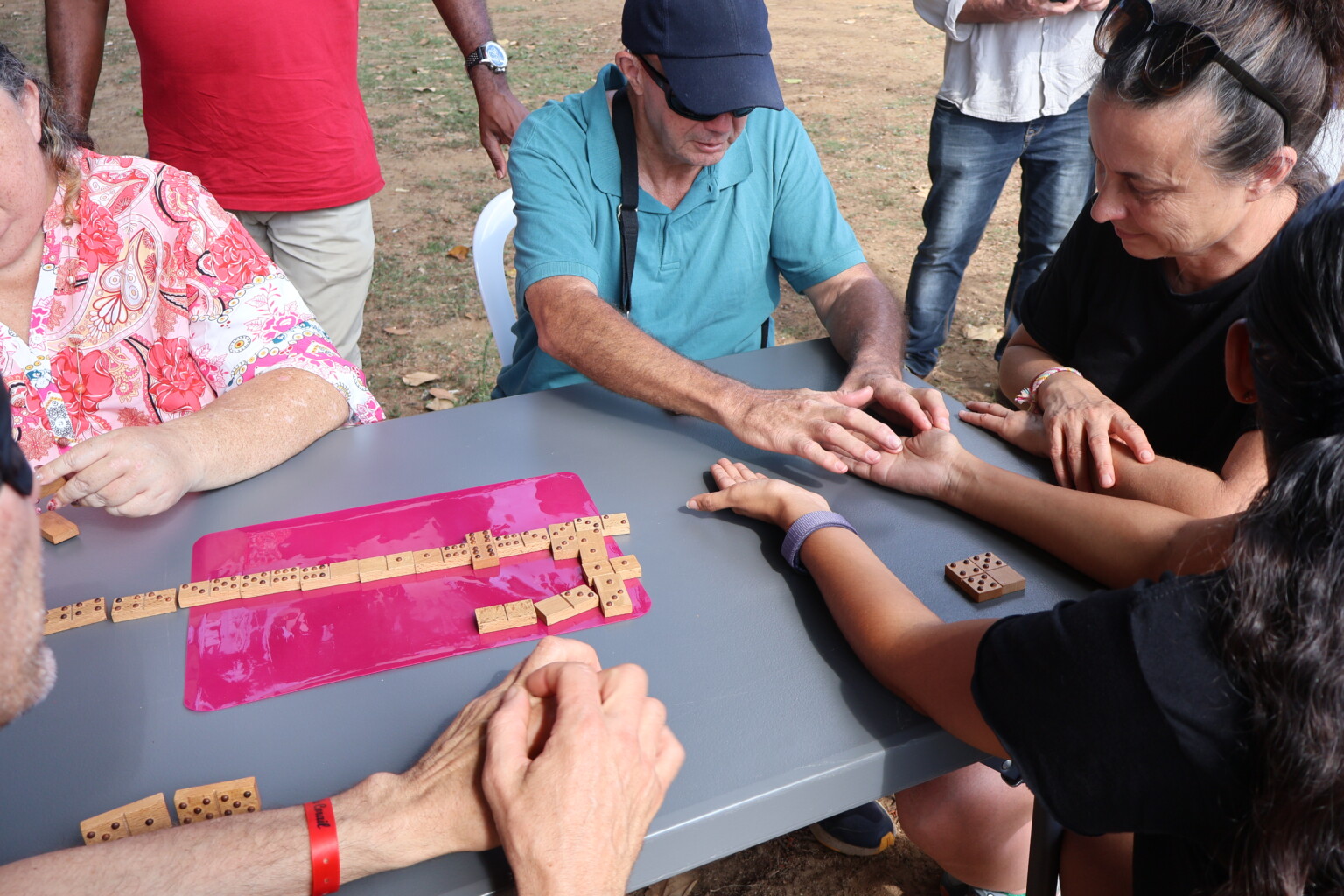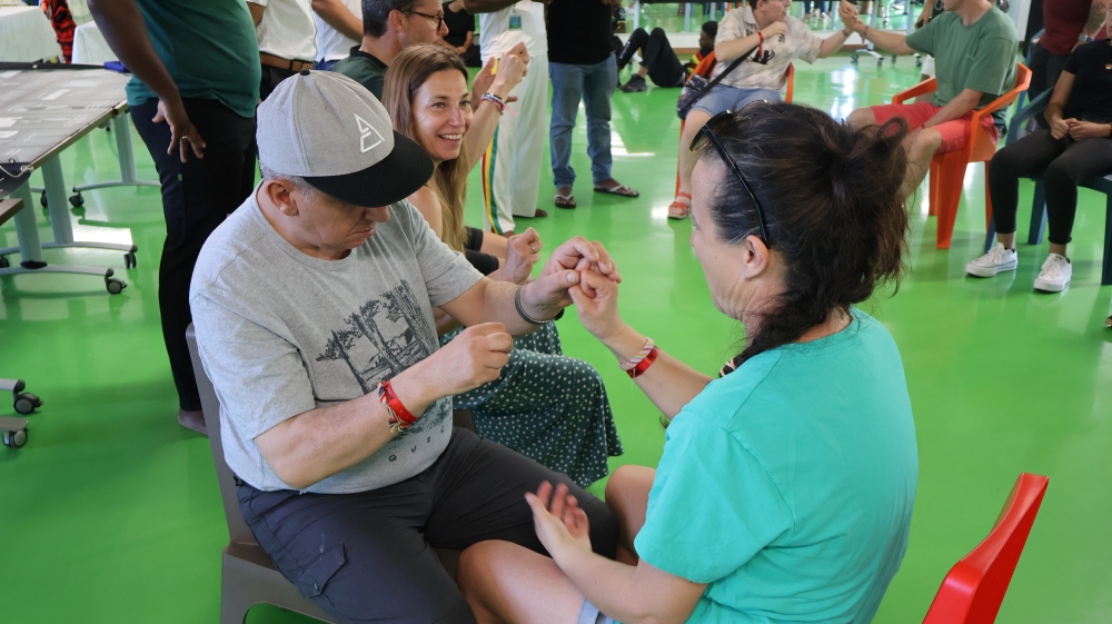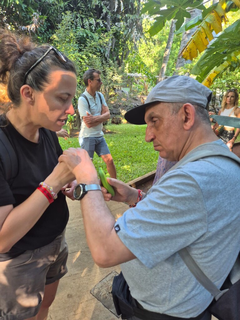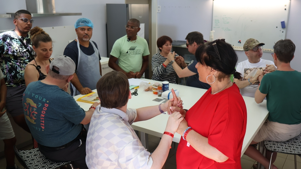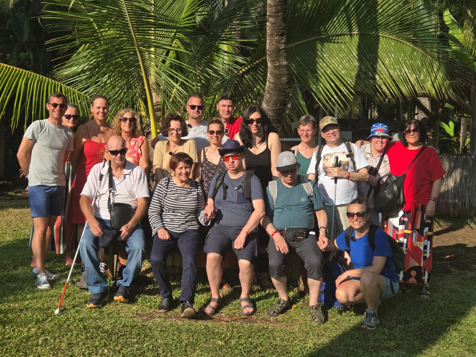 Le groupe est composé de 6 personnes sourdaveugles dont 2 personnes avec double déficience sensorielle, accompagnées de 14 professionnels de l’Association IRSAM, de l’APSA de Poitiers et de la Bastide en Belgique, ainsi que de 5 professionnels du CRESAM (Centre National de Ressources Handicaps Rares, experts en surdicécité, et coordinateurs du projet). Pour La Réunion, c’est Manon, accompagnée par IRSAM La Ressource, et Christina, accompagné par IRSAM Pétrel (SAMSAH DV), qui font partie du voyage.