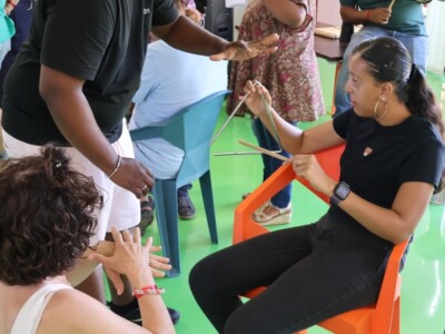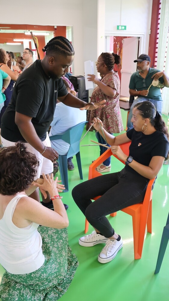 - Maloya et Moringue avec la Ville de Saint Denis à l’Académie des Camélias. Par les mains, les vibrations, le corps dans l’espace, ils explorent les instruments, le rythme et le mouvement, le contact avec l’autre… Une expérience inclusive, qui transcende le rapport aidants-aidés.